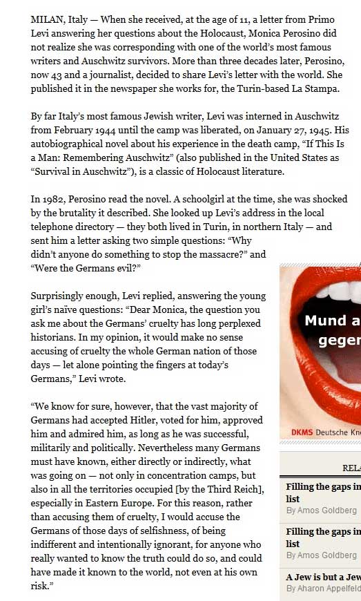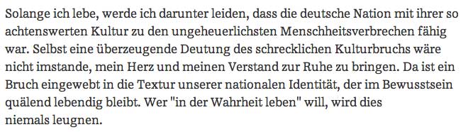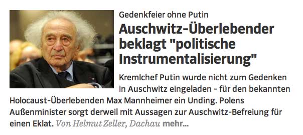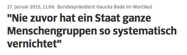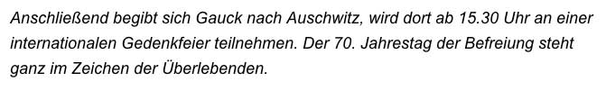 die Überragung der zentralen dem "Holocaust" gewidmeten und überall propagierter Andacht in der Gedenkfeier aller Parteien im Bundestag vor vielen Gästen mitten in der Rede des Bundespräsidenten, in seinem persönlichsten Satz brach das Fernsehen nach einer Stunde pünktlich ab -ohnehin nur abseits im Sender Phönix-