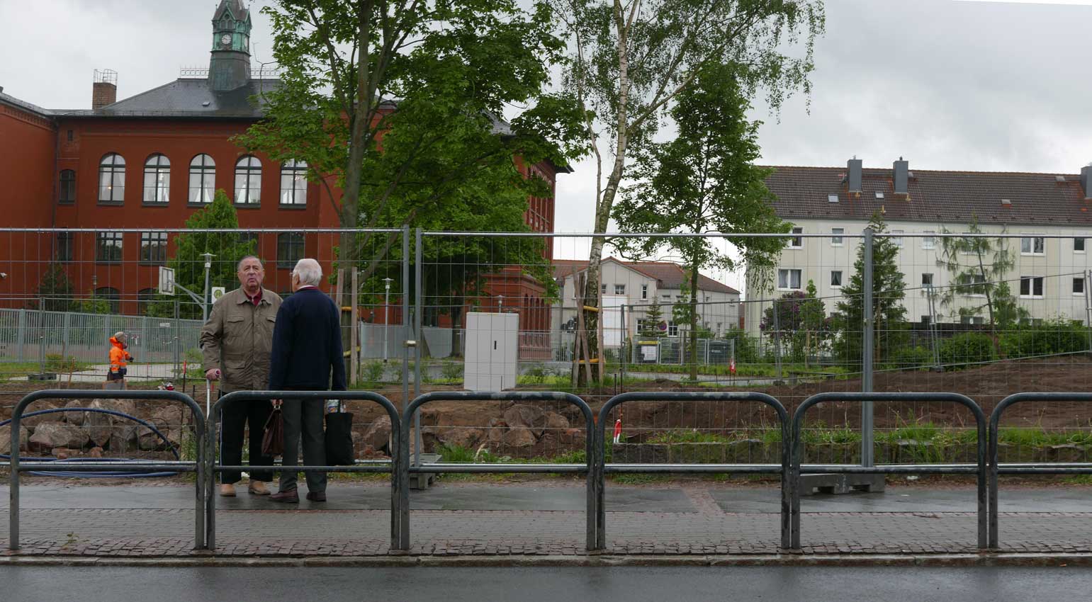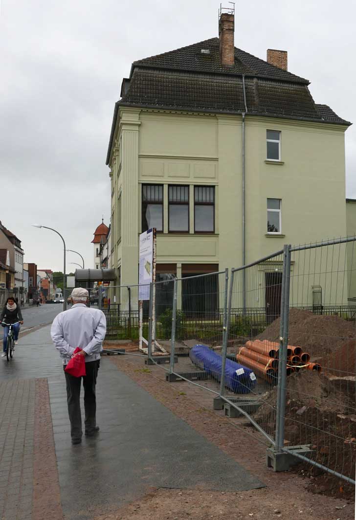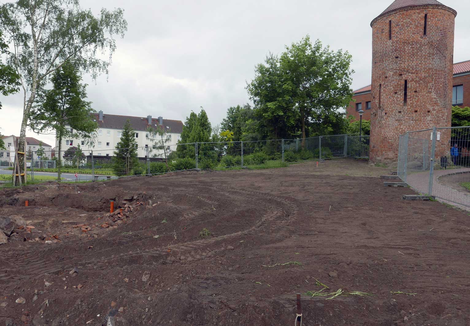 Dort. vor dem Luisen Tor und am Pulverturm, Wo eine ganze Stadtwar mit Häsern und Gassen. Zwischen Schule und Busbahnhof heute und Clara Zetkin-Srasse, wo der Heldenplatz war der DDR, der Arbeit ohne Arbeiter. Wollen sie die Clara Zetkin-Anlagen machen nun ohne Geschichte.