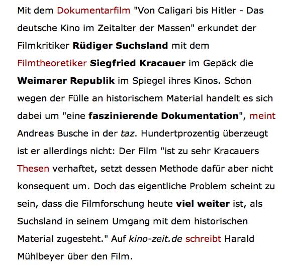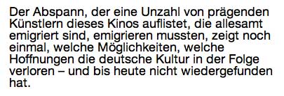 Hier des Films. Der dt. Film wird zum Emigrantenkino gemacht. Und sonst nichts?