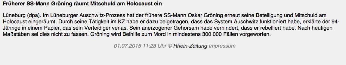 aktualisiert 2.Juli 14:12h:Der Angeklagte ist "schwächer denn je": Der Vorsitzende Richter hat den Auschwitz-Prozess gegen Oskar Gröning erneut vertagt. Die bedrückende Aussage einer Holocaust-Überlebenden dürfte dem 94-Jährigen zugesetzt haben.