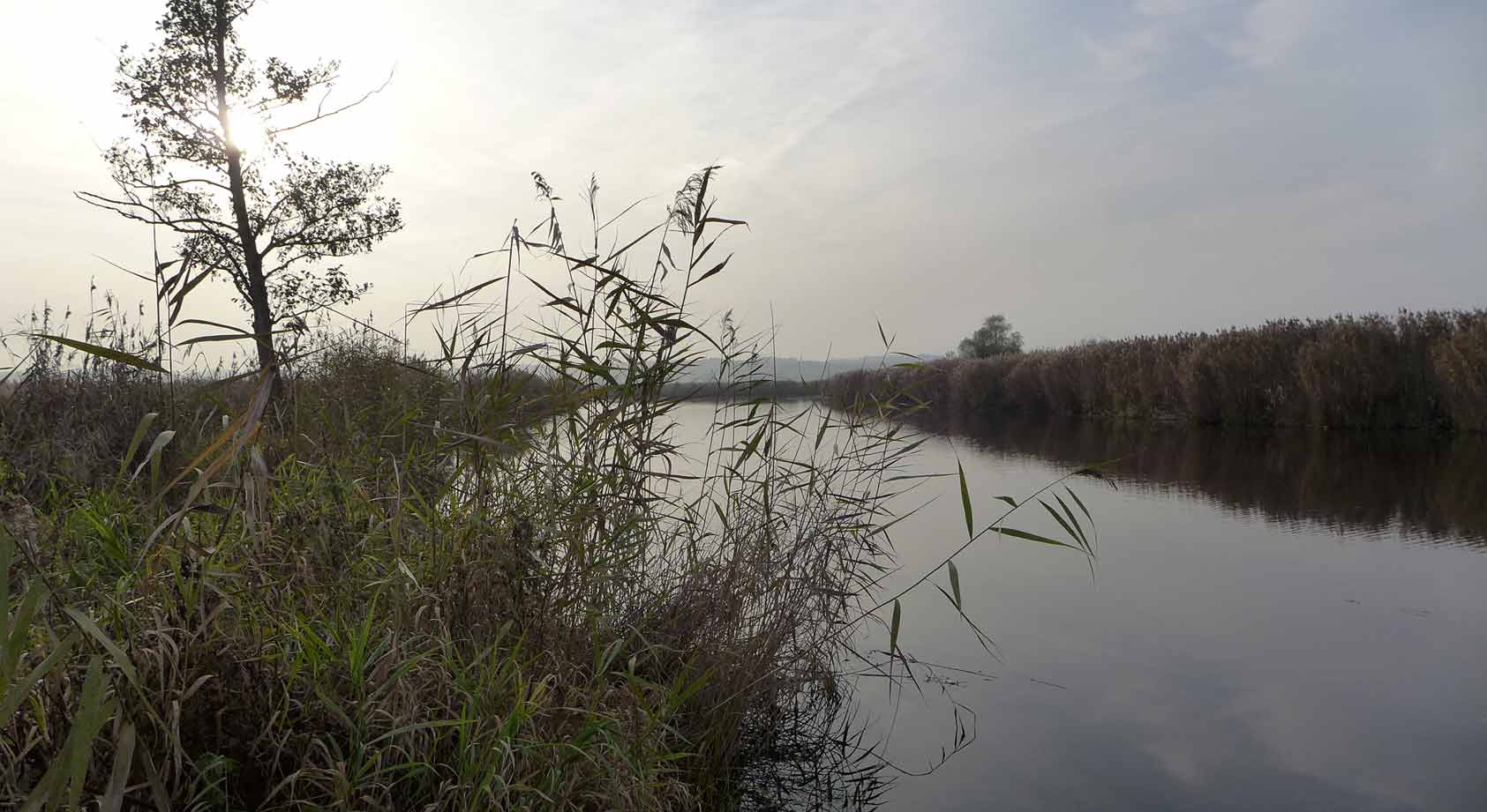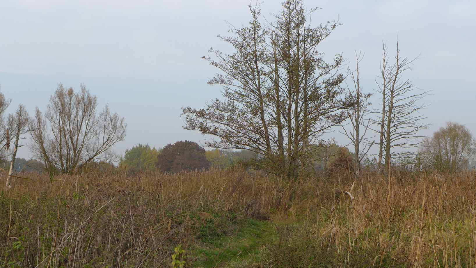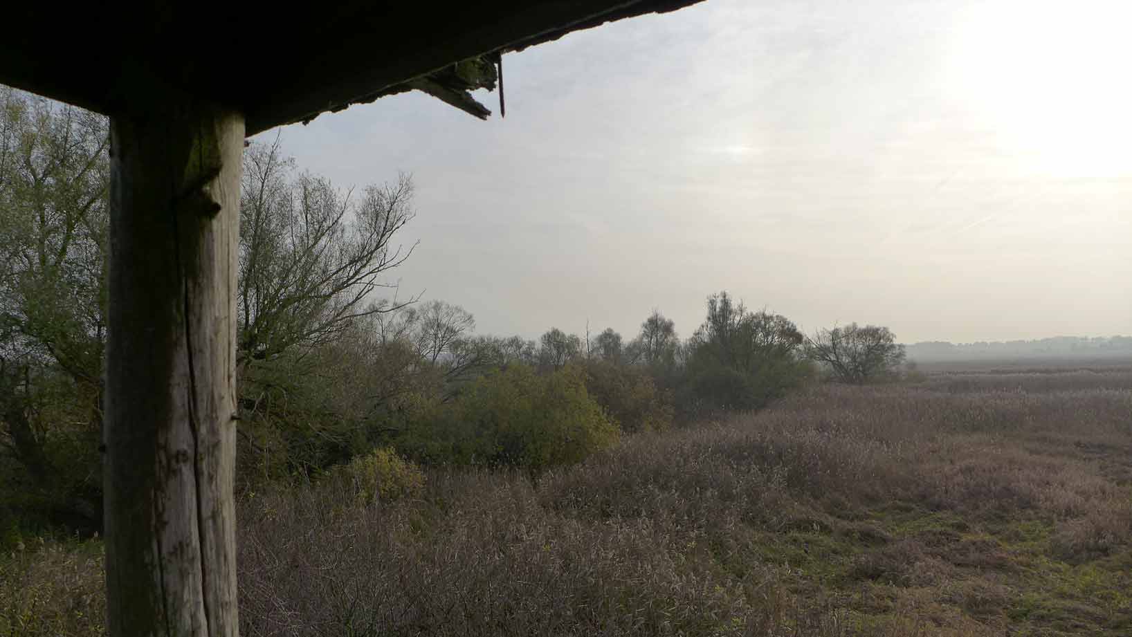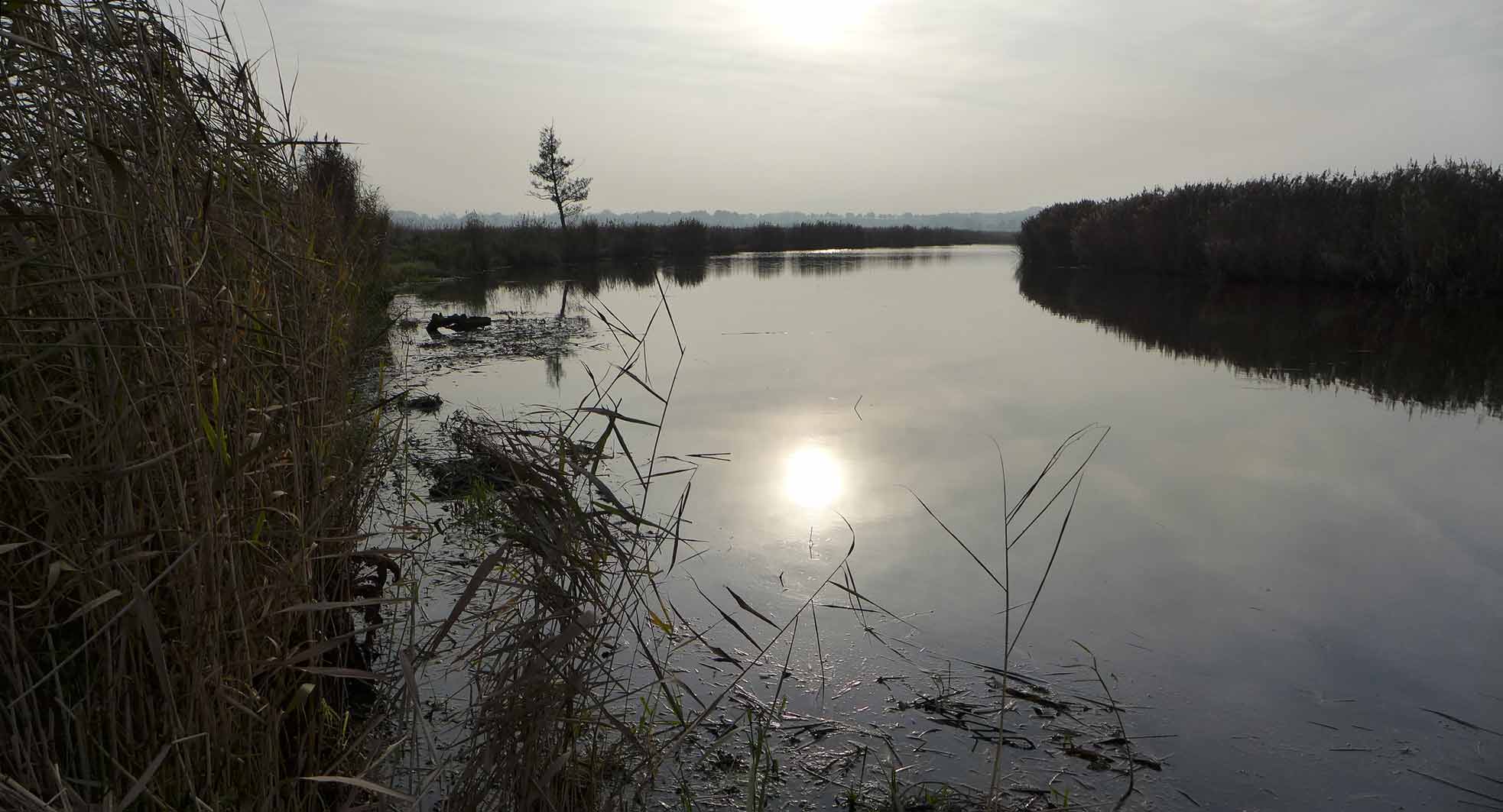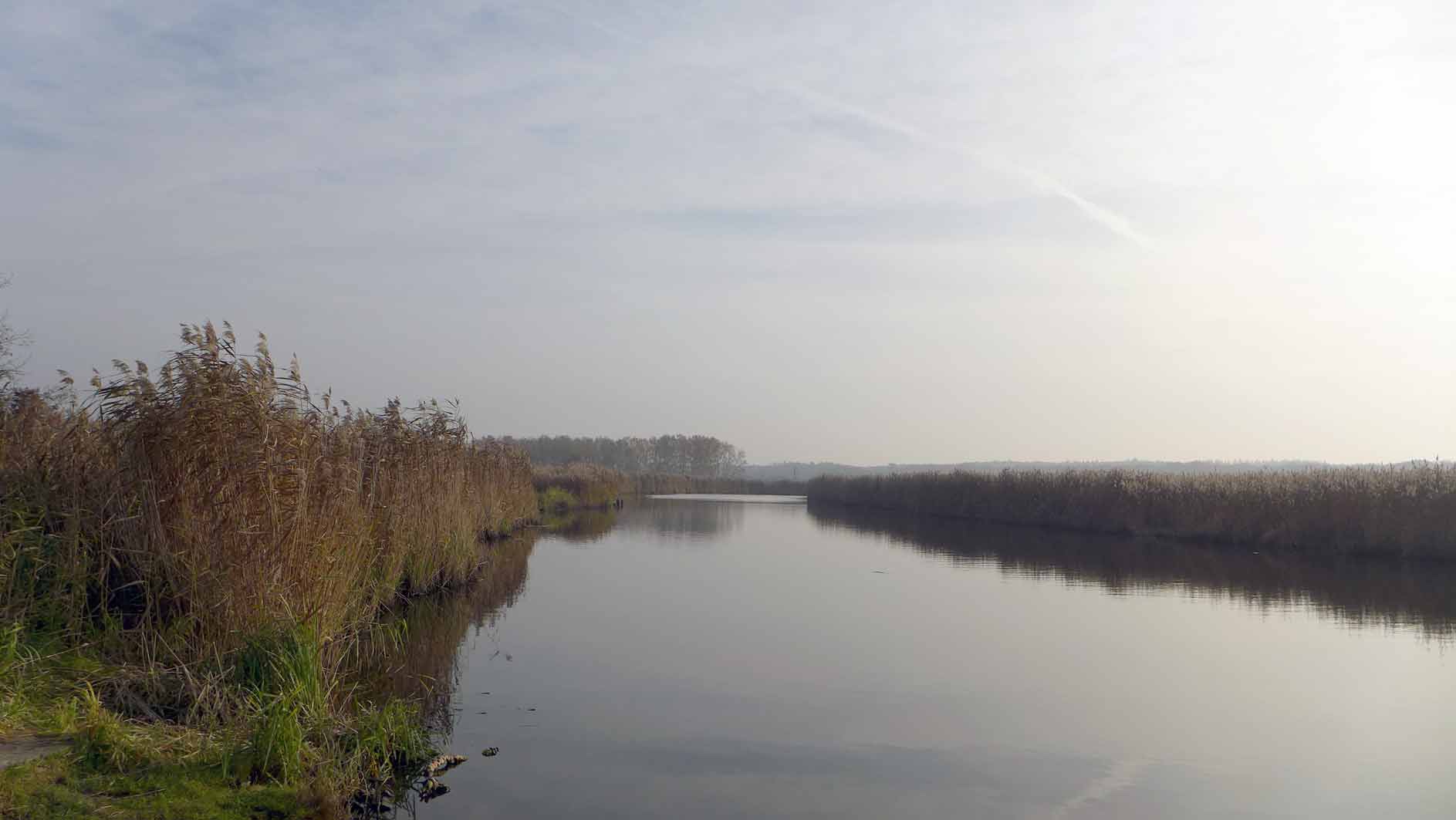 Der Fluss iost nun wieder in seine Wildnis eingebetet, früher zu unserer Zeit sanft den Wiesen und Kühen und den badenden Kindern übergeben. Das Hinterland hinab in Feldern und Inseln der Baume gehörte dazu. Die Windräder der Dränagen zur Entwässerung, sorgsam in Gräben gefasst, sind verloren. Aber der Fruss, der fliesst, wie immer noch.