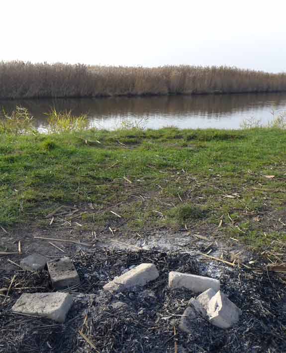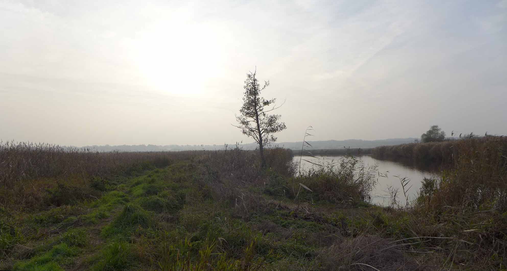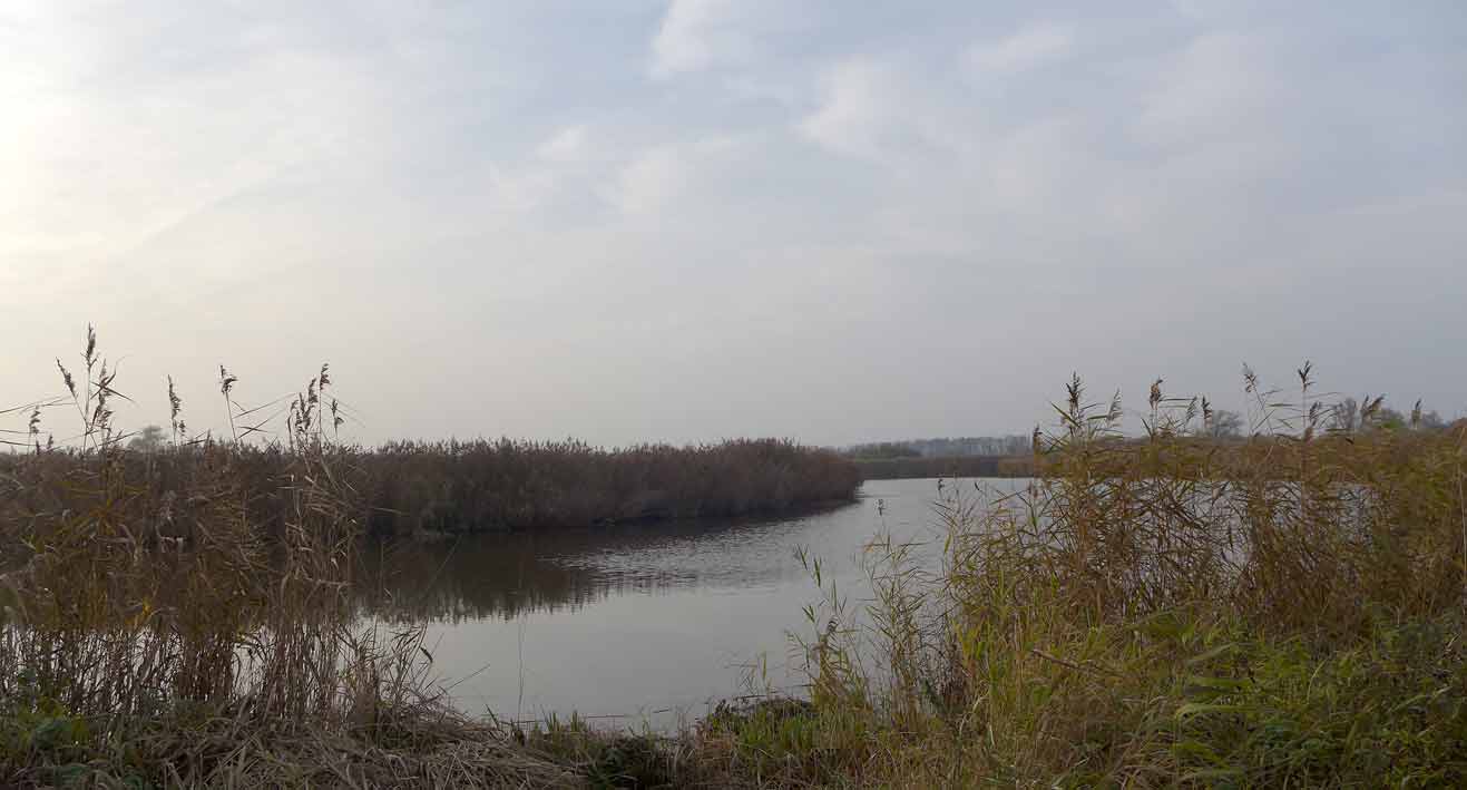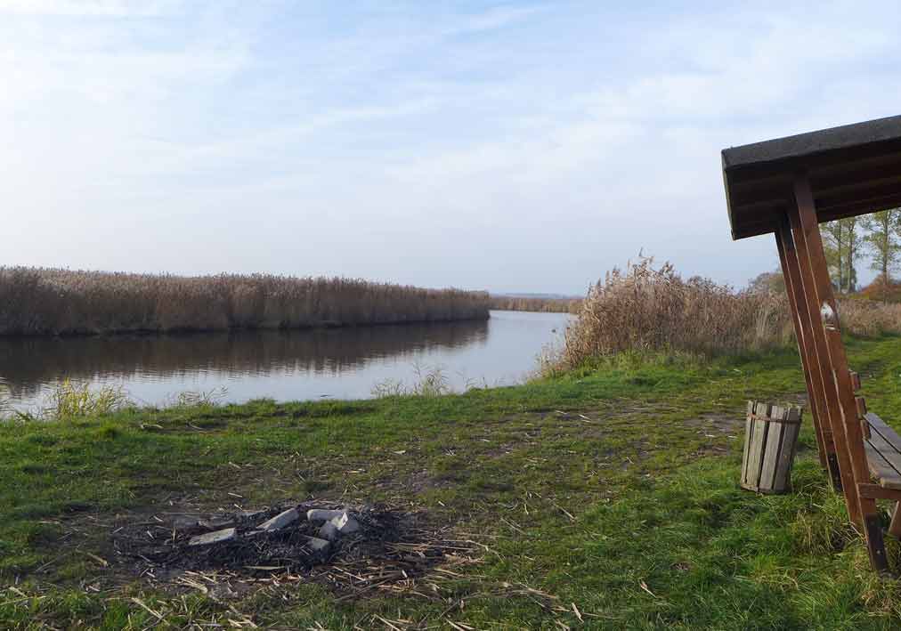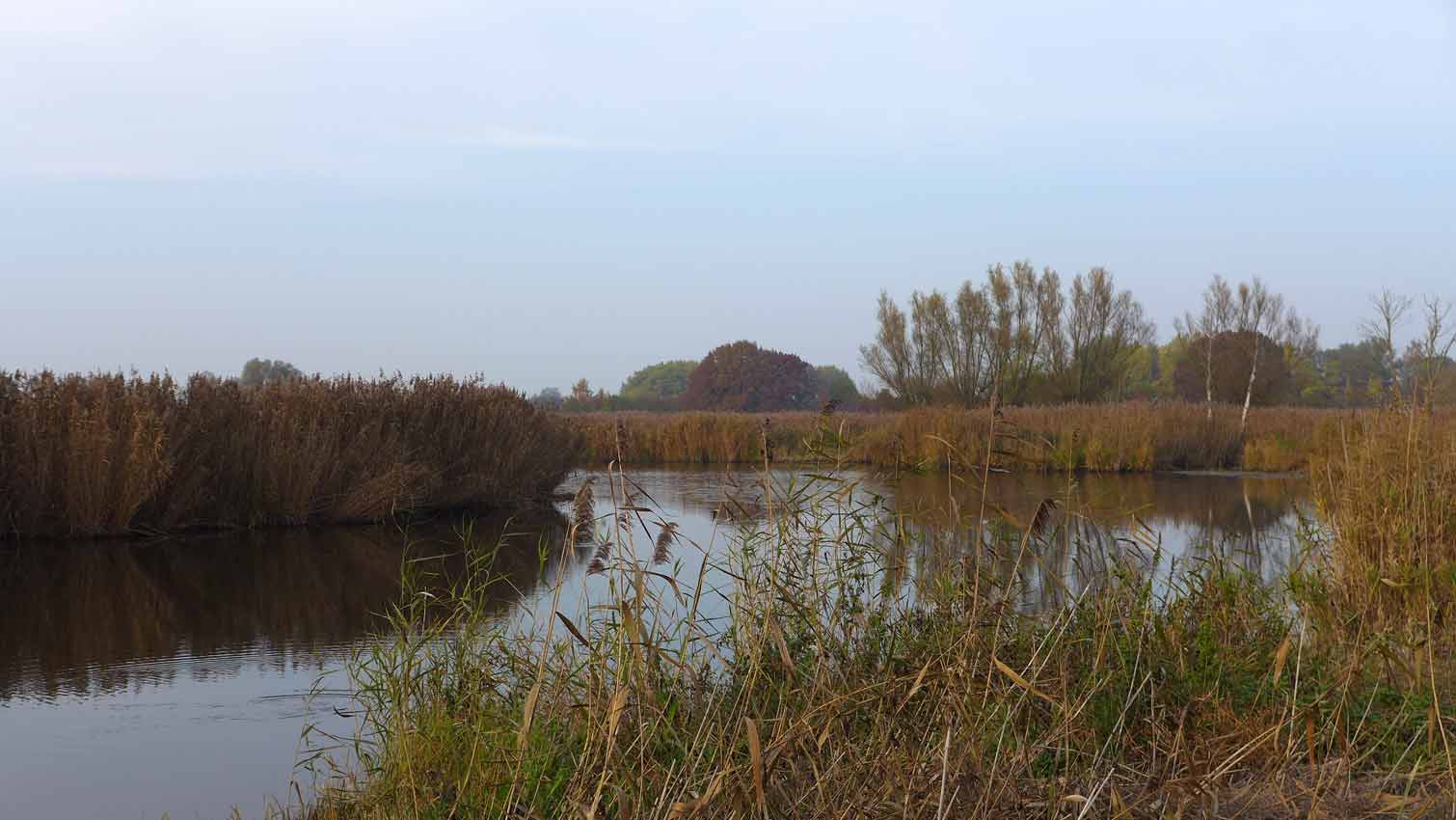 Der Fluss iost nun wieder in seine Wildnis eingebetet, früher zu unserer Zeit sanft den Wiesen und Kühen und den badenden Kindern übergeben. Das Hinterland hinab in Feldern und Inseln der Baume gehörte dazu. Die Windräder der Dränagen zur Entwässerung, sorgsam in Gräben gefasst, sind verloren. Aber der Fruss, der fliesst, wie immer noch.