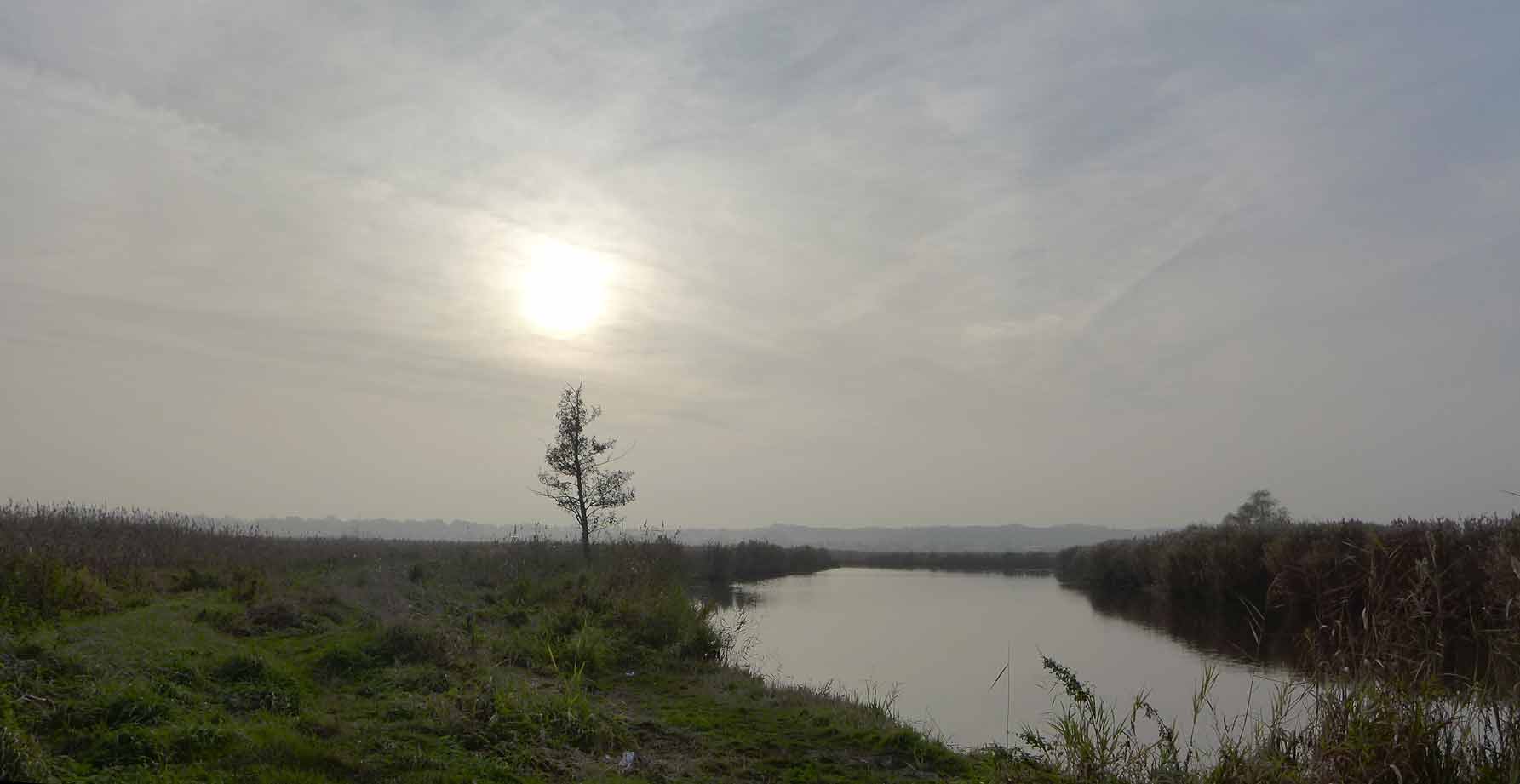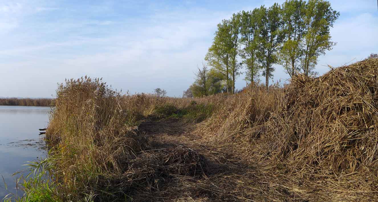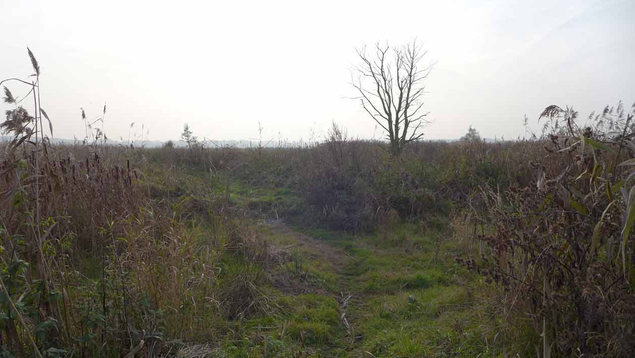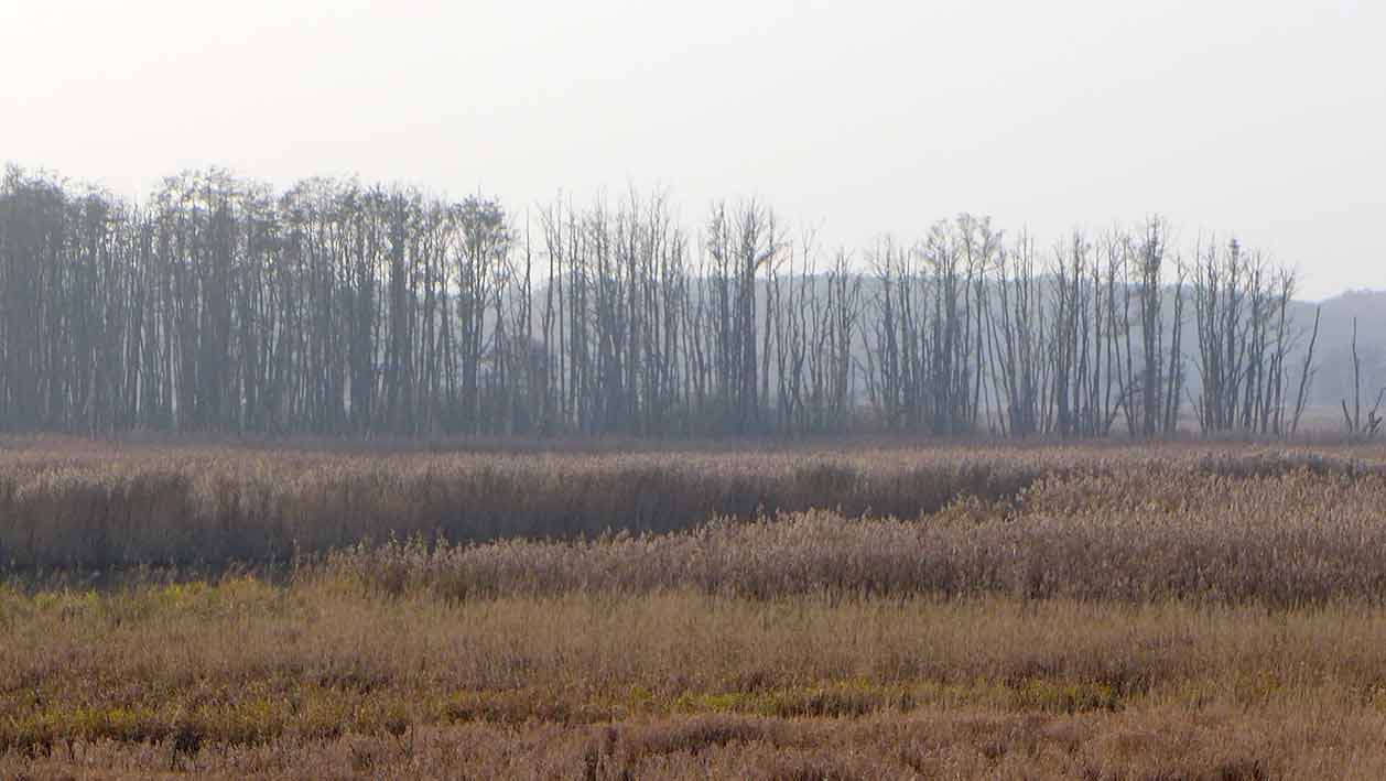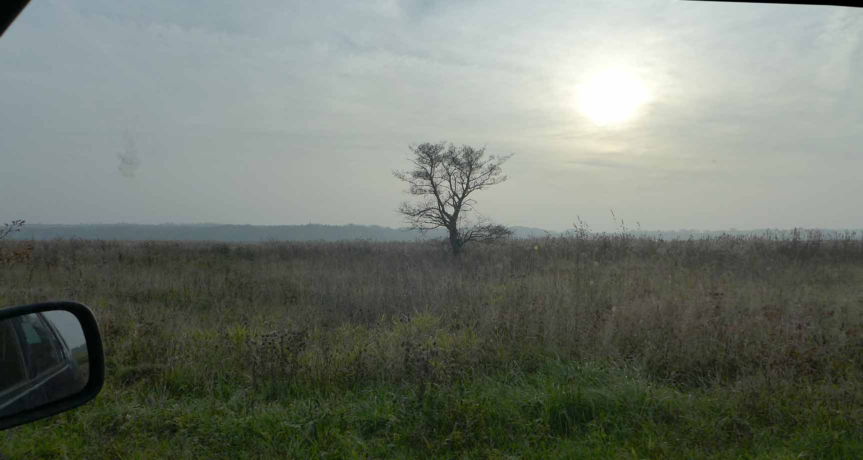 Der Fluss iost nun wieder in seine Wildnis eingebetet, früher zu unserer Zeit sanft den Wiesen und Kühen und den badenden Kindern übergeben. Das Hinterland hinab in Feldern und Inseln der Baume gehörte dazu. Die Windräder der Dränagen zur Entwässerung, sorgsam in Gräben gefasst, sind verloren. Aber der Fruss, der fliesst, wie immer noch.