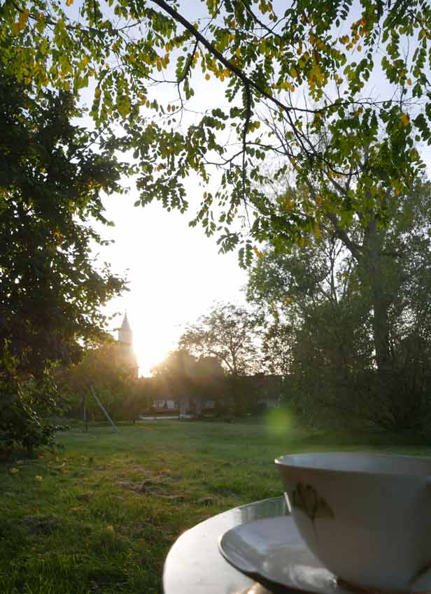 zum Reden und denken und schreiben oder essen und trinken Kaffe und Tee oder Wein