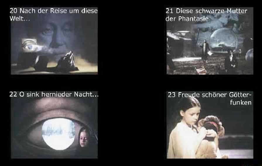 Für den Blockmonitor im Speisezimmer haben wir insgesamt 7:13 Minuten aus dem Winifred-Interview vorgesehen, und zwar folgende Passagen: