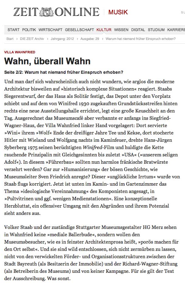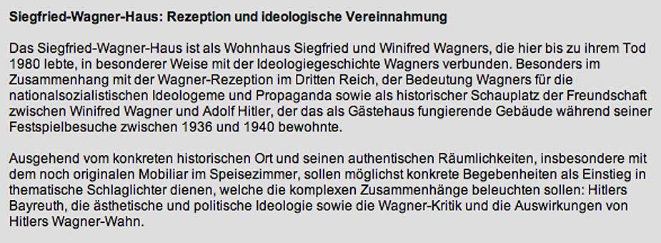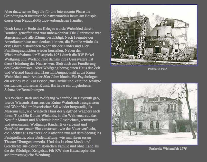 trotz Abspaötung in verschiedenen Funktionen und Besitzverhltnisse was machen sie dort wenn sie Wahnfried, das Wohnheus Richard Wagnres nun in einen neu Fassung bringen und warum intessiert es uns besonders.
