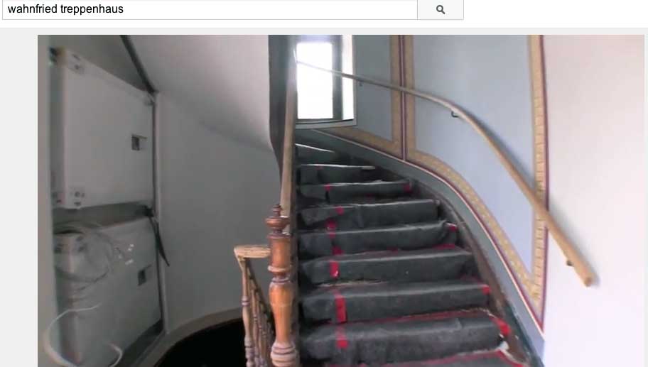 auf der von der momentanen Leitung zugeschickten und aus dem Büro der Museums-Designer ferfertigte DVD mit 7 Minuten aus 5 Stunden Wiunfred Wagner in ihrem Konzept steht : Treppenhaus