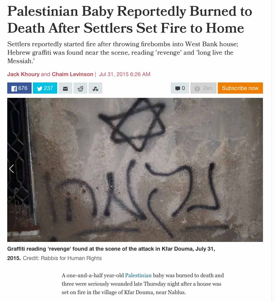 In unmittelbarer Nähe das Tatorts im Westjordanland fanden die Ermittler hebräische Graffiti. Dort standen unter anderem die Worte "Rache" und "Lang lebe der Messias".