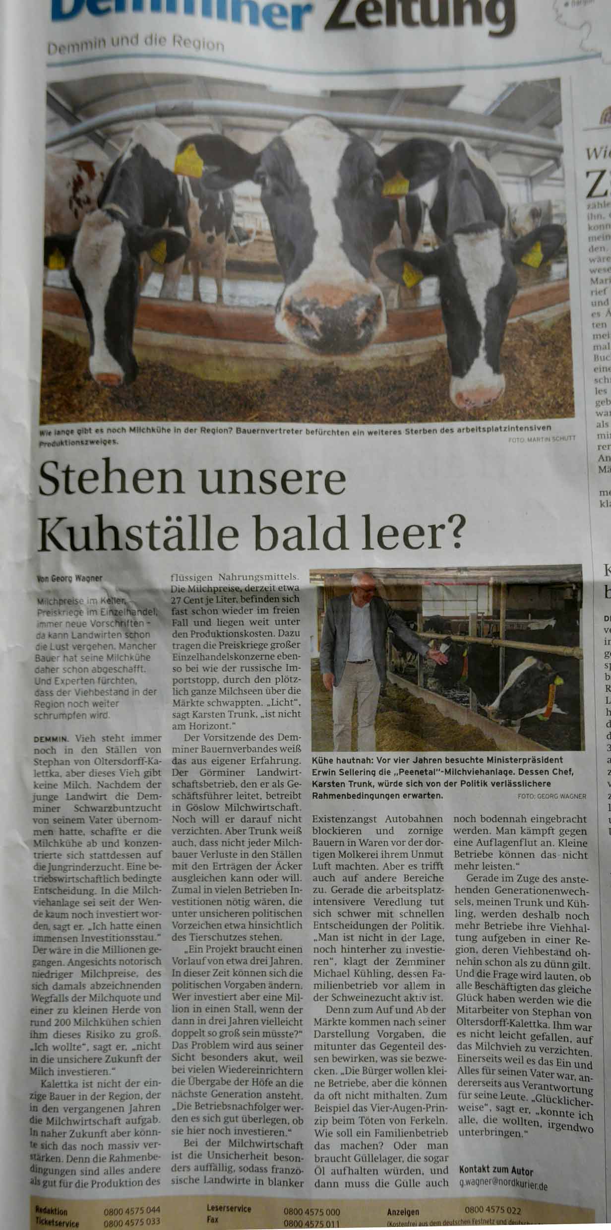 bald ohne Kühe? Alptraum der Väter. Man schaue die Euter an und die Sprache, die von Zahlen redet, in Litern und Produkten, wenn sie Leben meinen, und auch das Ihre. Wer will das noch trinken.