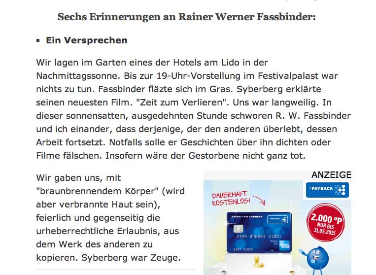 A.Kluge erzählt vom Film-Festival in Venedig 1972 an dem der Ludwig, Requiem... Weltpremiere hatte .... (Fassb. Händler/Kluge Zirkukuppel?)