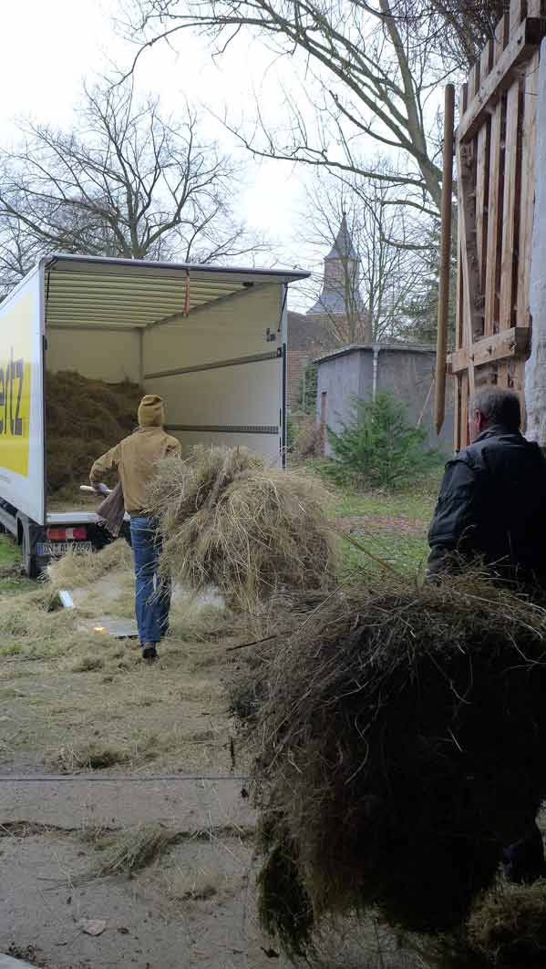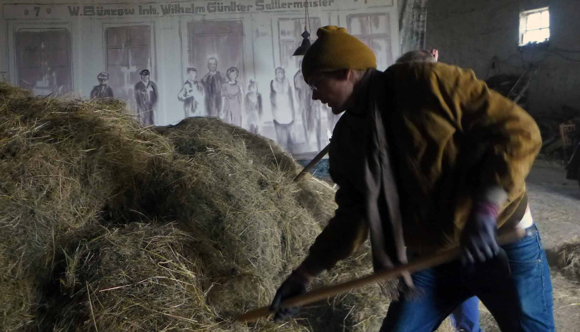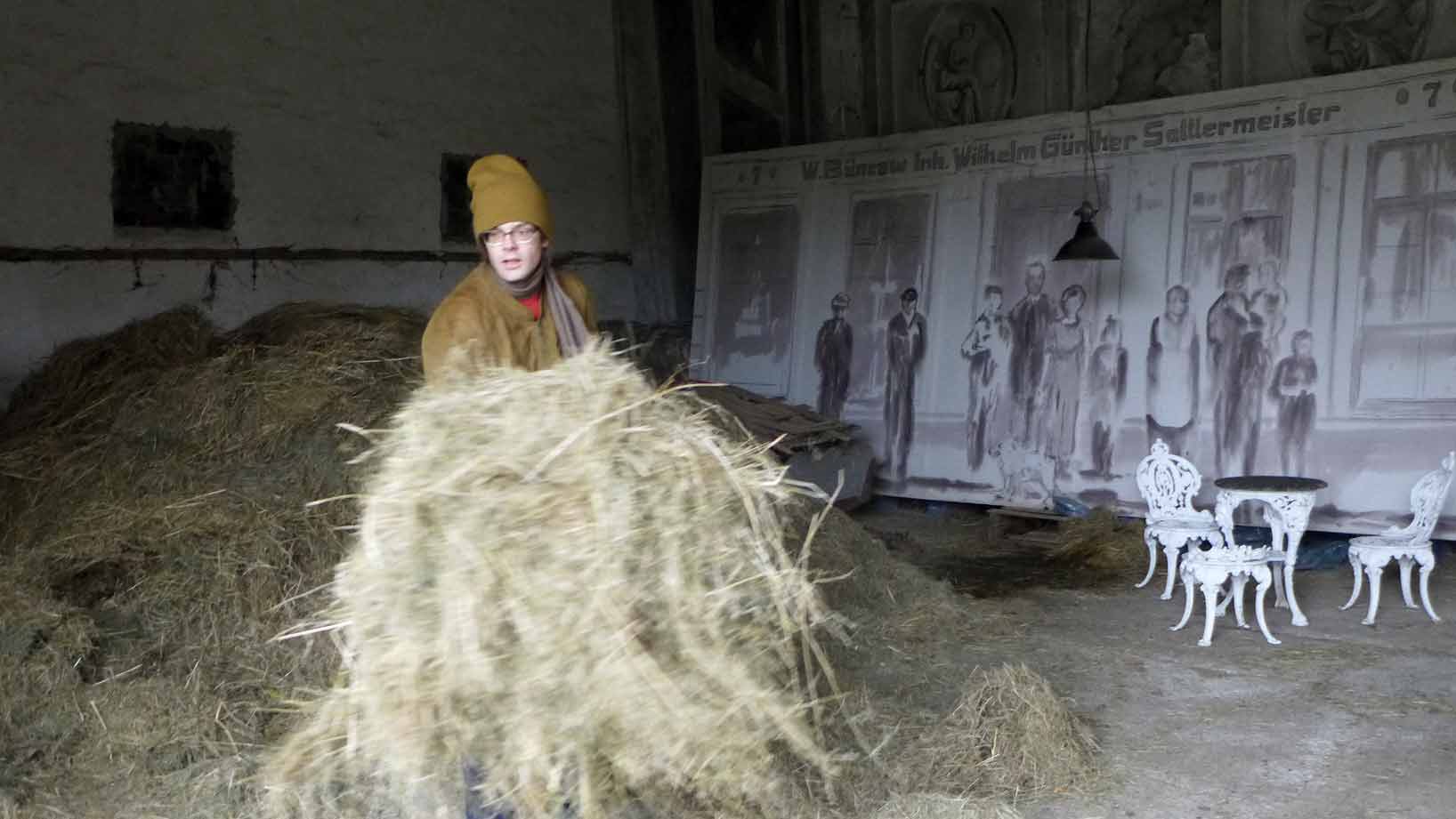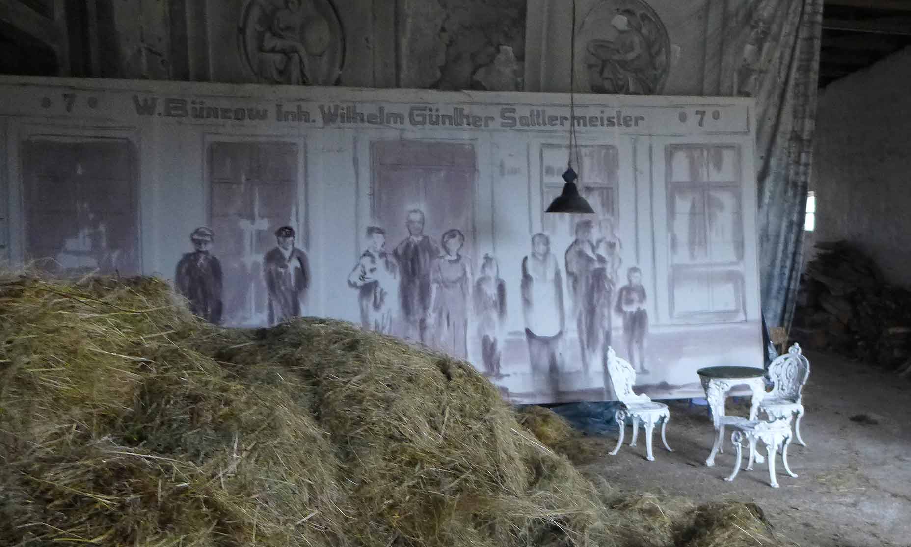 in einer Halle der LPG, die früher eine Scheune war und wieder werden soll