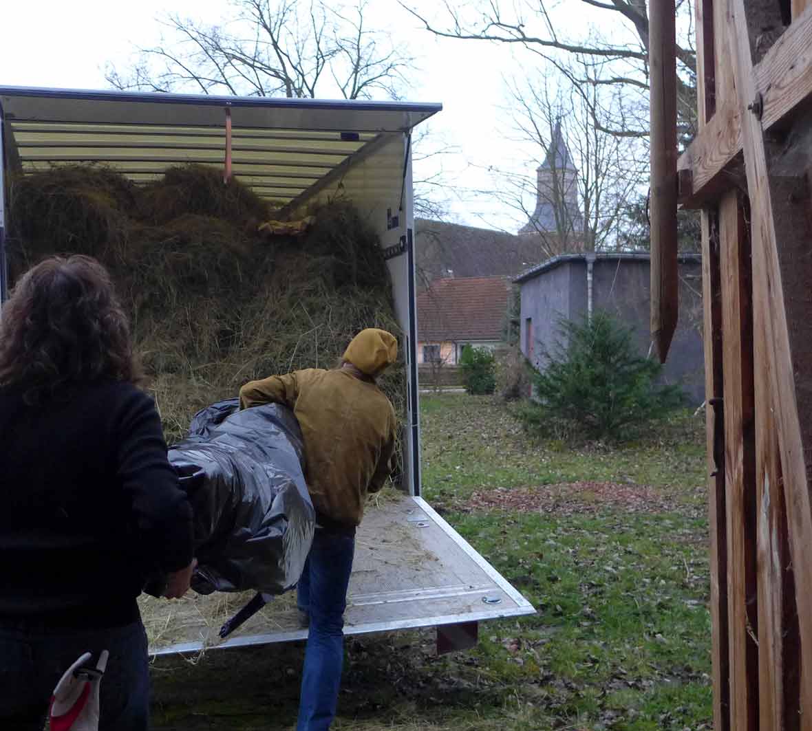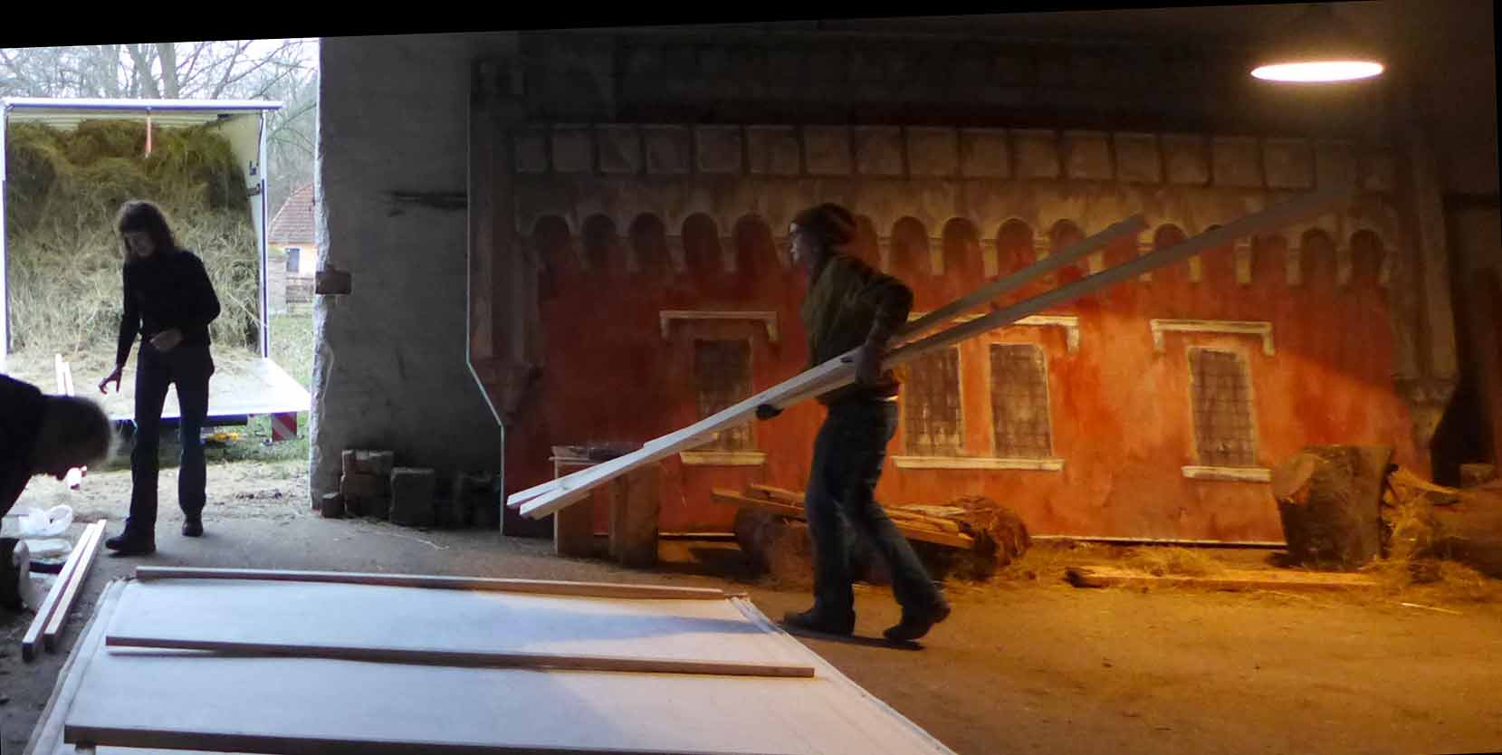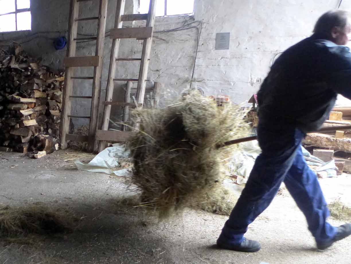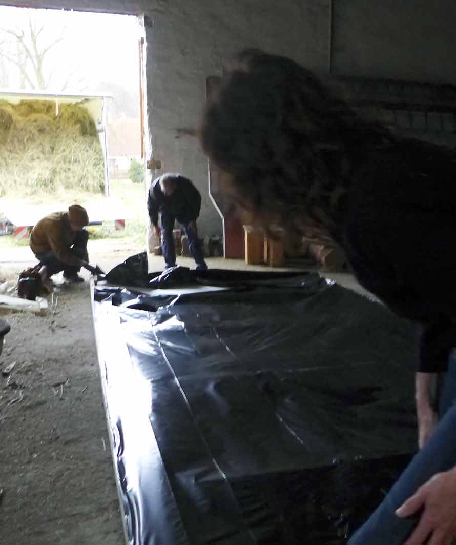 in einer Halle der LPG, die früher eine Scheune war und wieder werden soll