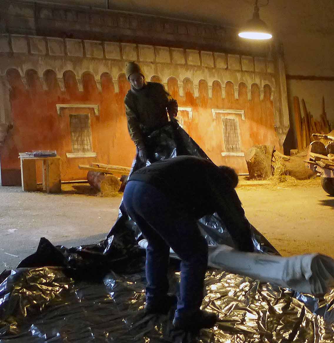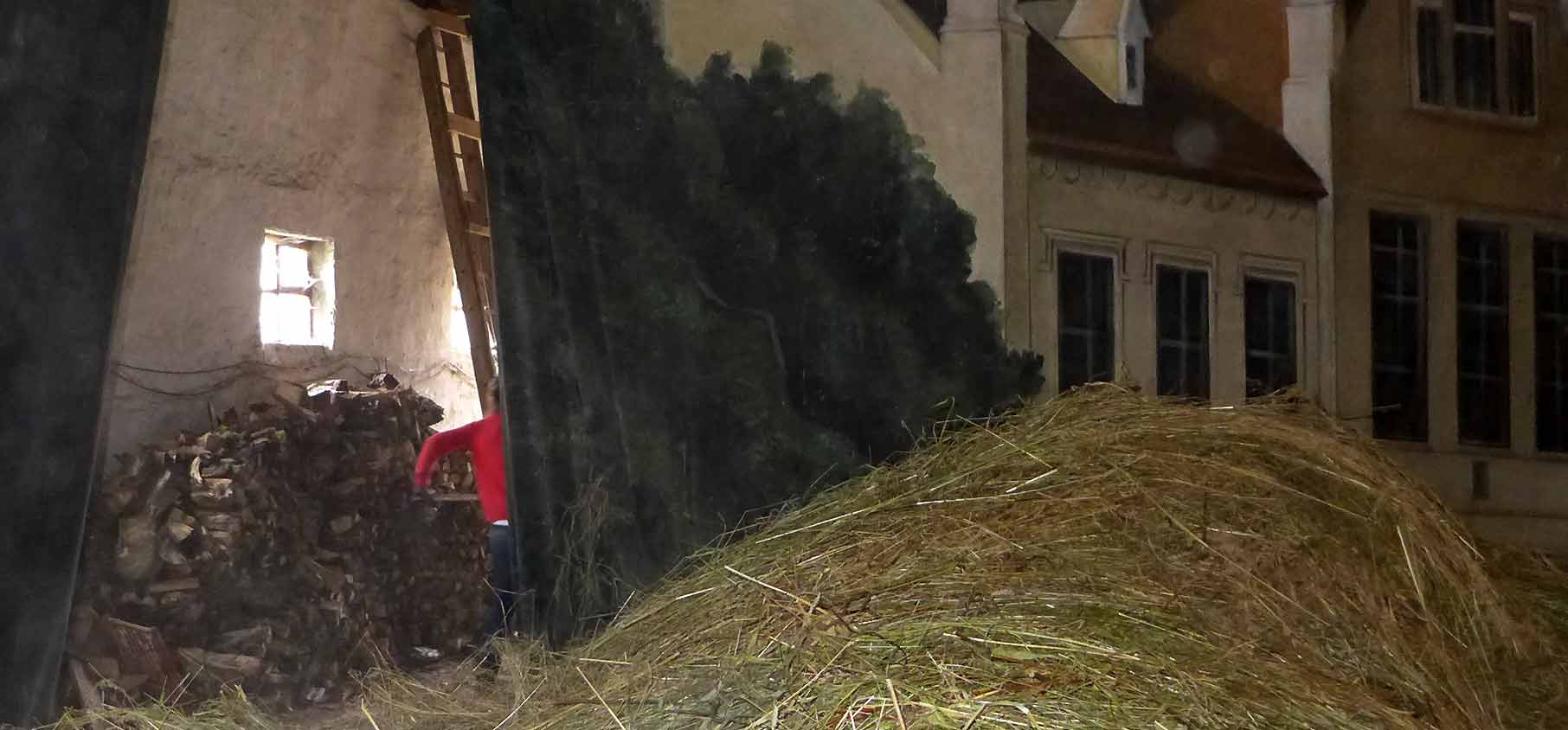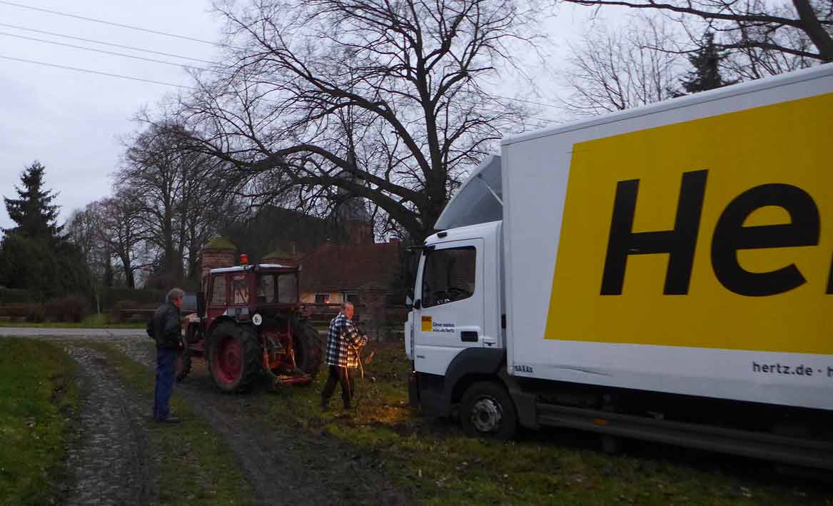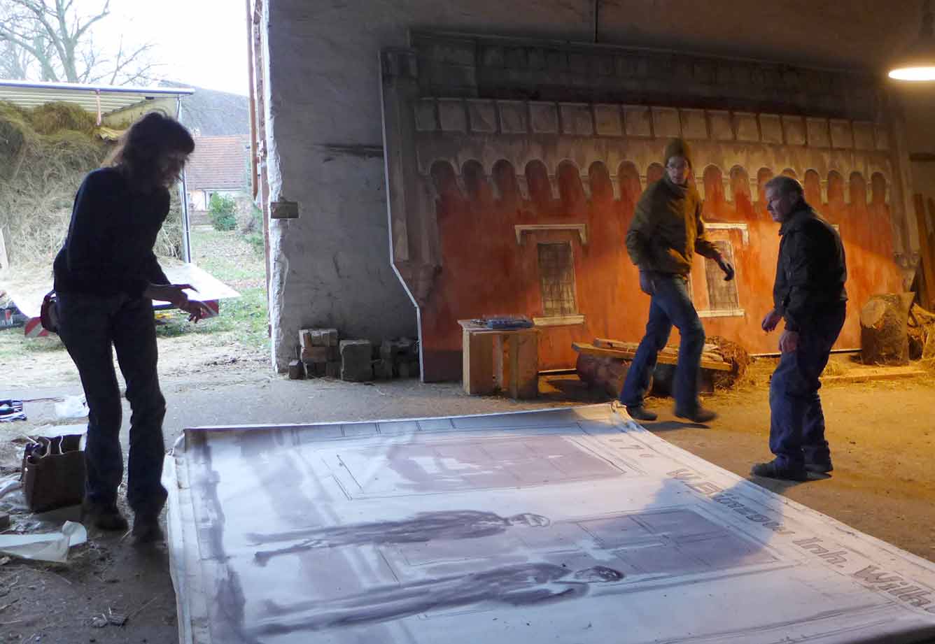 in einer Halle der LPG, die früher eine Scheune war und wieder werden soll