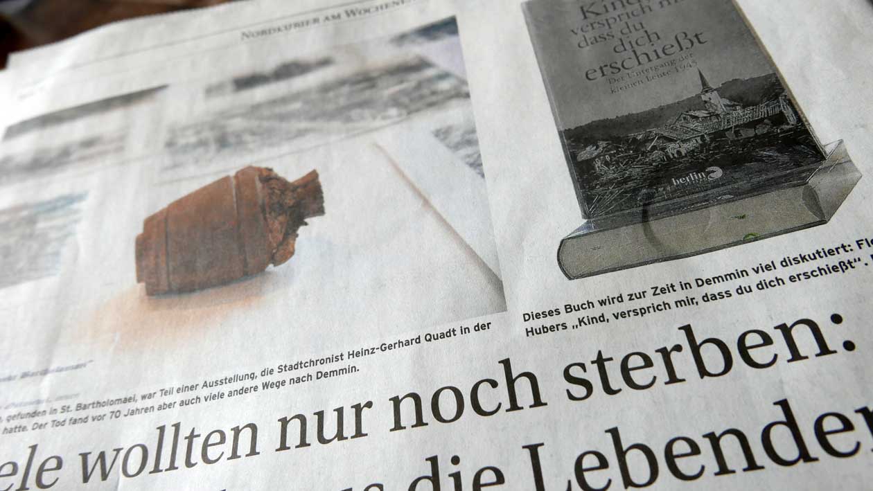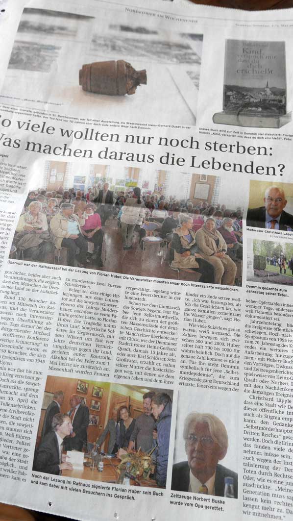 Vor 7o Jahren wurde Demmin hier und das Land hier zum grossen Schlachtfeld der Toten Kinder und Frauen. Endlich gedenken wir ihrer wieder. Tun wir was. Dass es nicht umsonst war.
