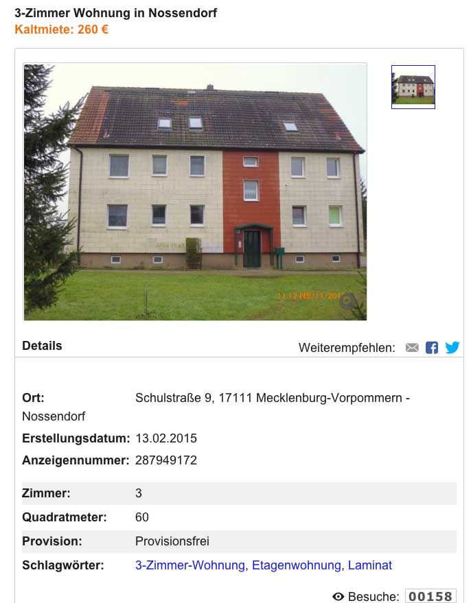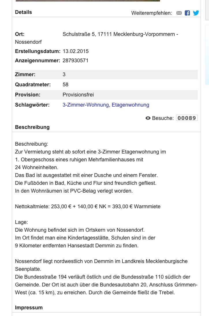 einer, der da gerne wohnt kommt und zeigt unter EBAY Kleinanzeigen diese Annoncen mit Entsetzen. Wer sich so anbiete darf sich nicht wundern, wenn niemand kommt - nach Nossendorf.