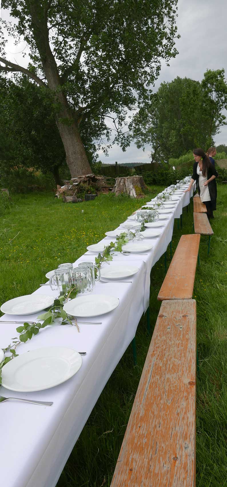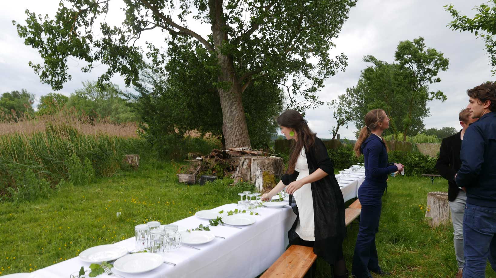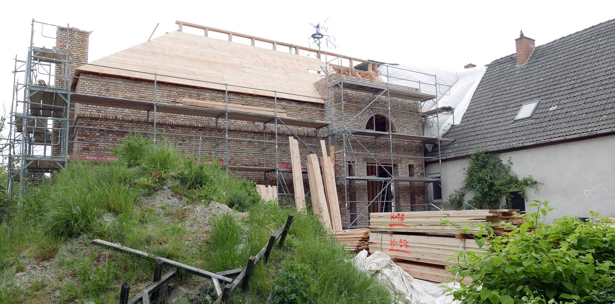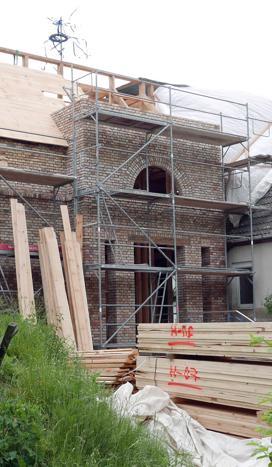 Architekten Alexander Schwarz und Freunde im Team Chipperfield Berlin Museumsinsel usw. jetzt hier mit dem Fest des Baus zum Geburtstag der Frau. mit den Bauleuten und den Leuten aus dem Dorf. Ans alte Haus angelehnt das Neue.