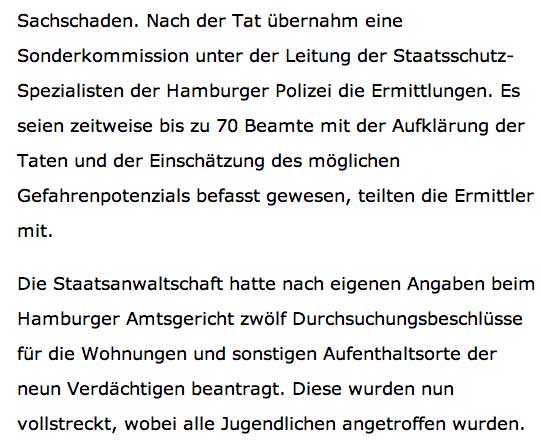wer wagt da noch zu sagen, dass: Die öffentlichen Lampen auf den Strassen des Nachts abzuschalten eine private Sache sei. Wenn diese Lampen schützend in der Lage sind solche Straftaten wie Brände nach Hausfriedensbruch im Dunkeln und Einbruch zu begünstigen und unsere gewählten Vertreter der öffentlichen Ordnung sie abschalten lassen, das Geld zu sparen, dass sie für was oder wen anderes -muss man fragen- dann ausgeben.