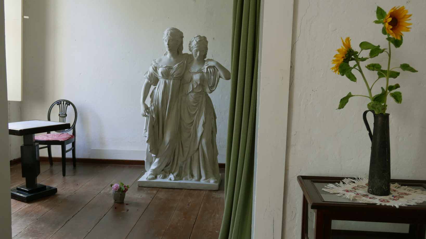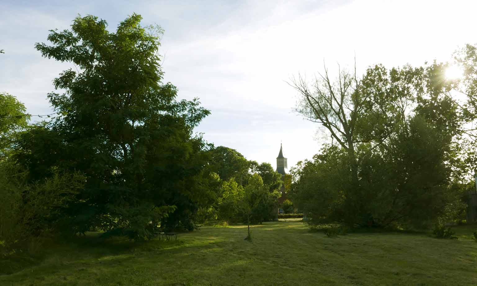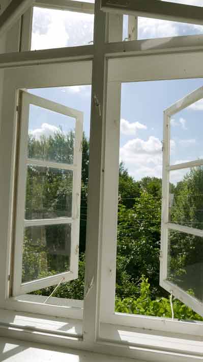 Dies Fenster hat schon eine Reise hinter sich. Gleich im ersten Jahr der Rückkehr nach Paris gebracht kündete es von einen Nossendorf der Welt. Als des Haus noch in seiner Rückkehr zur Bewohnbarkeit träumte.
