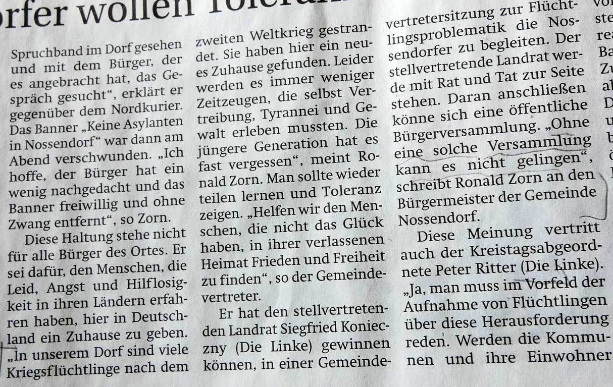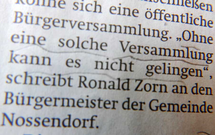 So falsch wie die Wege eines Dorfes illegal befestigen zu lassen und zu verkaufen oder die Verfassung der Gemeindevertretung, jene "Urzelle der Demokratie" des Landes, nach altem Muster der Dominanz eines hörigen Bürgermeisters einer neugewählten Gemeinde einzupauken, so wie es nicht richtig war, das Gesicht der Kita nach LPG-Standart zu bestimmen oder den Feldweg nach Medrow im Wald kampflos gegen die Unterschriften der Dörfer zu verlieren, als ob es nicht das WHGesetz gäbe. Wenn einfache Anrufe in Schwerin und Neubrandenburg und Neustrelitz, in Ministerien und bei zuständigen Referaten und Dezerneten oder Abteilungsleiteren ganz andere Ergebnisse bringen als der hiesige Dorfschulze dann seiner Gemeinde verkündet, wenn er sie wie unmündig verkauft.