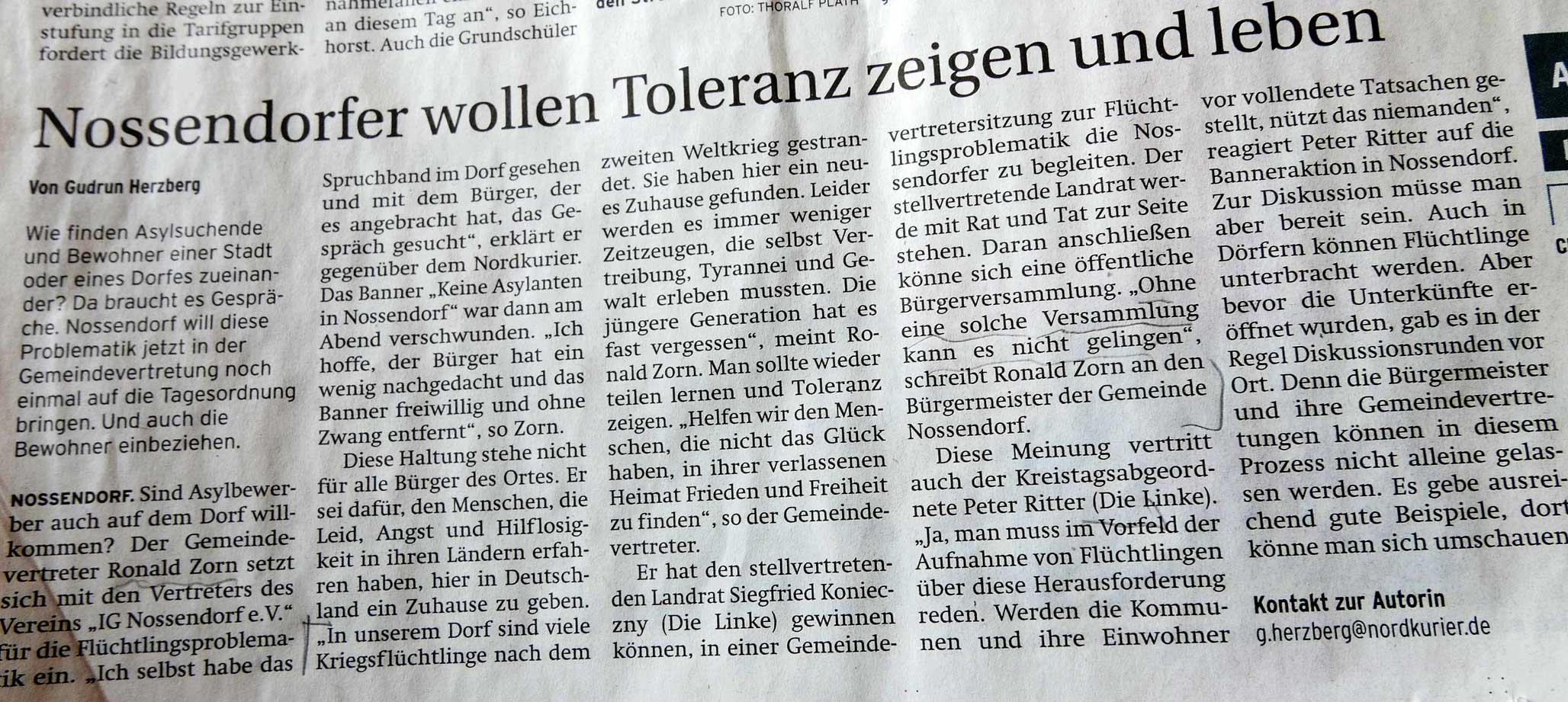 Ohne Beerbaum aus Wotenick gäbe es das Nossendorf von heute nicht mehr, ohne seine Faust auf den Tisch im rechten Moment, und seinen Bagger der Hiulfe, dies Nossendorf wie bei Wikipedia aktuell illustriert, vielleicht noch als klägliches Ende wie als Nossendorf. de der Gemeinde ohne Turm (und dieser nur nach Protesten unter Beschimpfungn ertrotzt) und ohne aktives Gutshaus der Weltdimension aber mit geschleiften Stadtgut und einem Hamann'schen Hof der LPG -Kita-Norm als verlorenes Land.