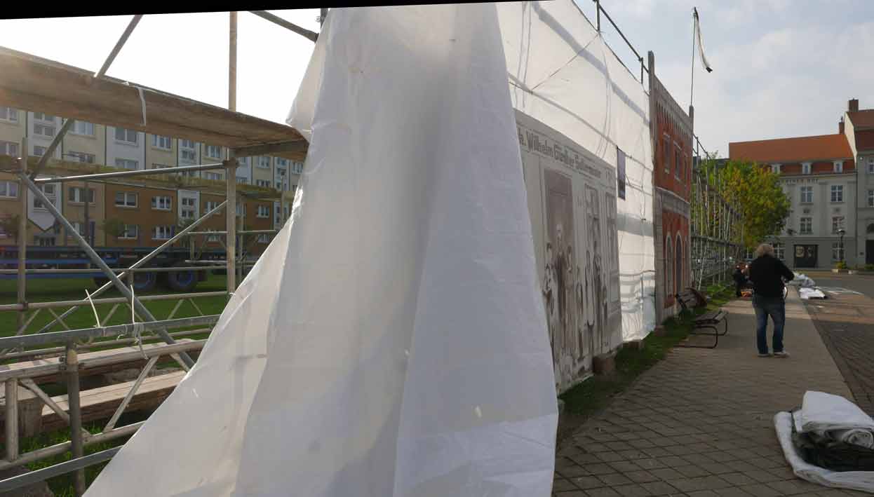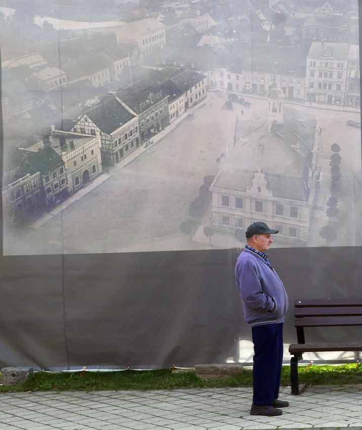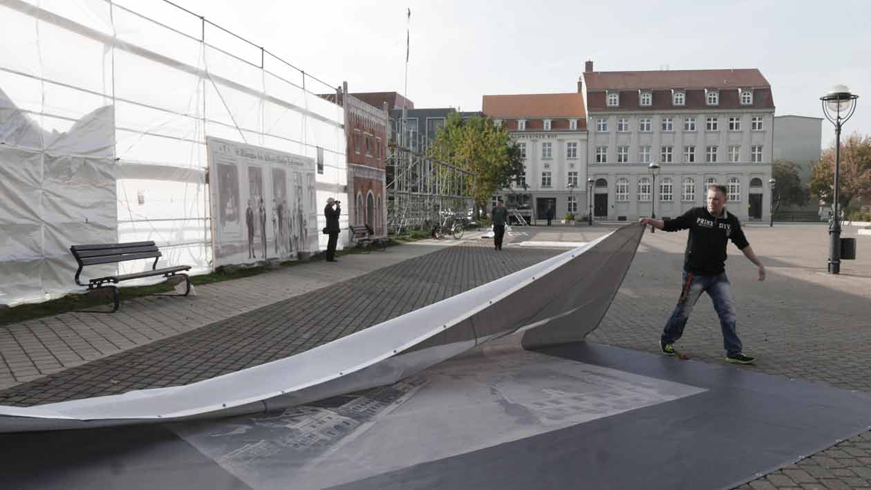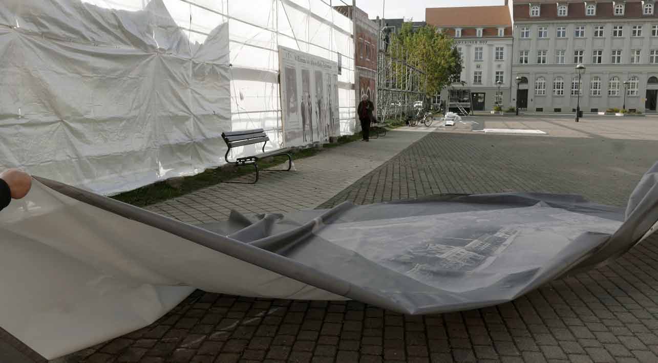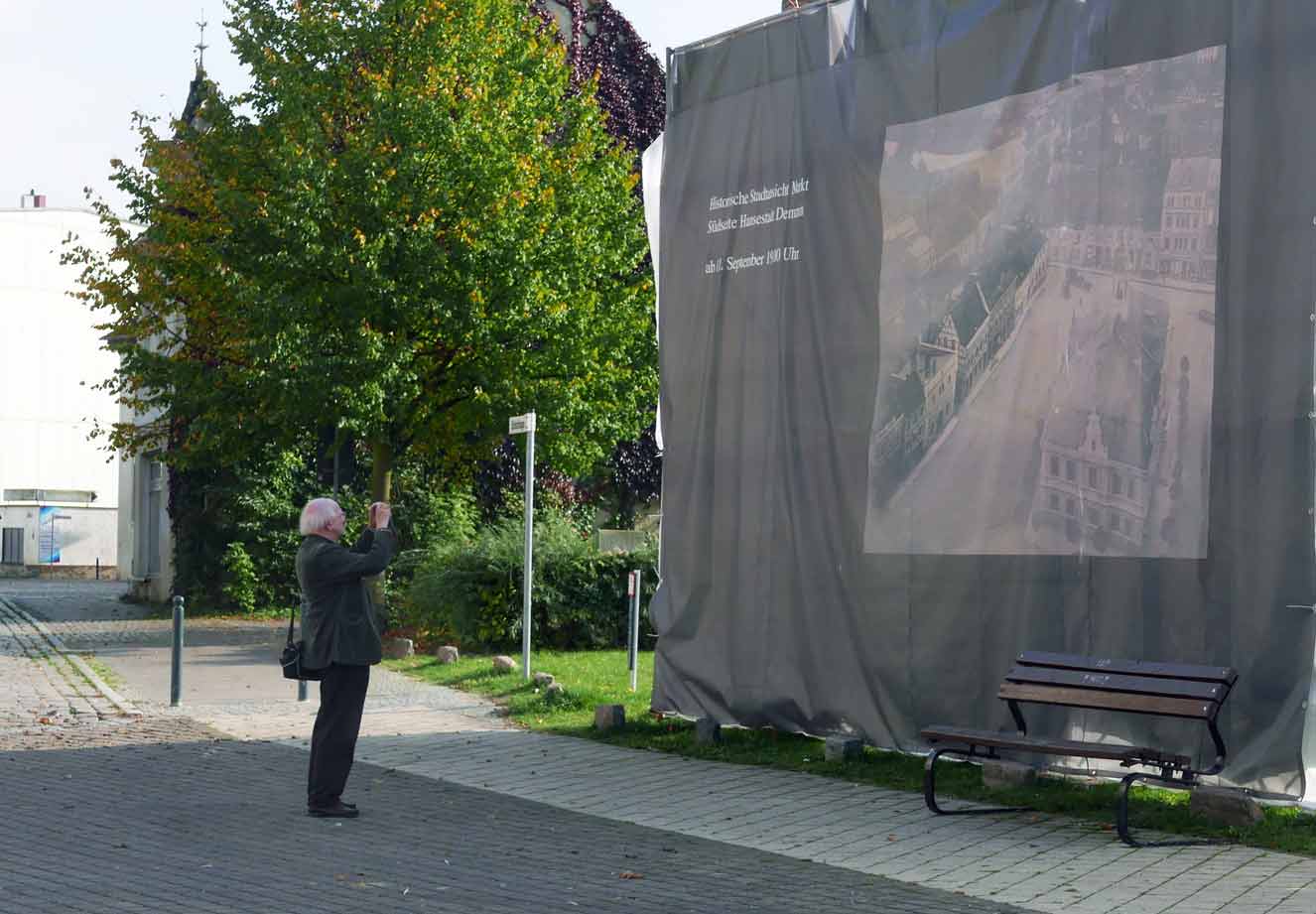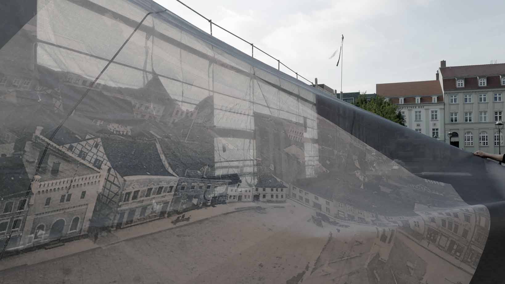 zweimal hat man diese Marktseite verloren. Einmal durch Kriegsende und das Feuer. Dann, nach erstem Leben darin wieder durch Abrisse für eine sozialische Neuordnung der Stadt, ebenso wie das Rathaus für eine Leere, von der sich die Stadt seitdem nicht mehr erholte. Noch einmal jetzt war es die Absicht bewusst zu machen mit den Spuren der Gedächnisse, was da war - und wieder sein könnte. Werden sie die Kraft und den Willen noch haben. Die Stadt wär es wert.