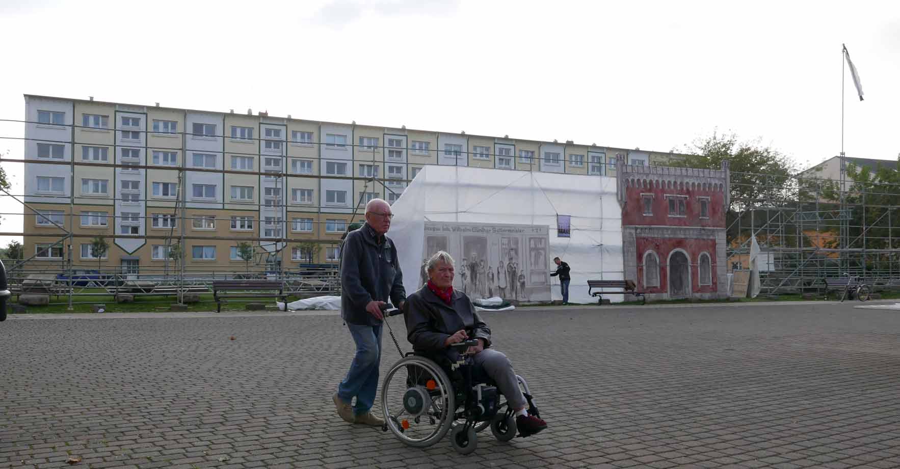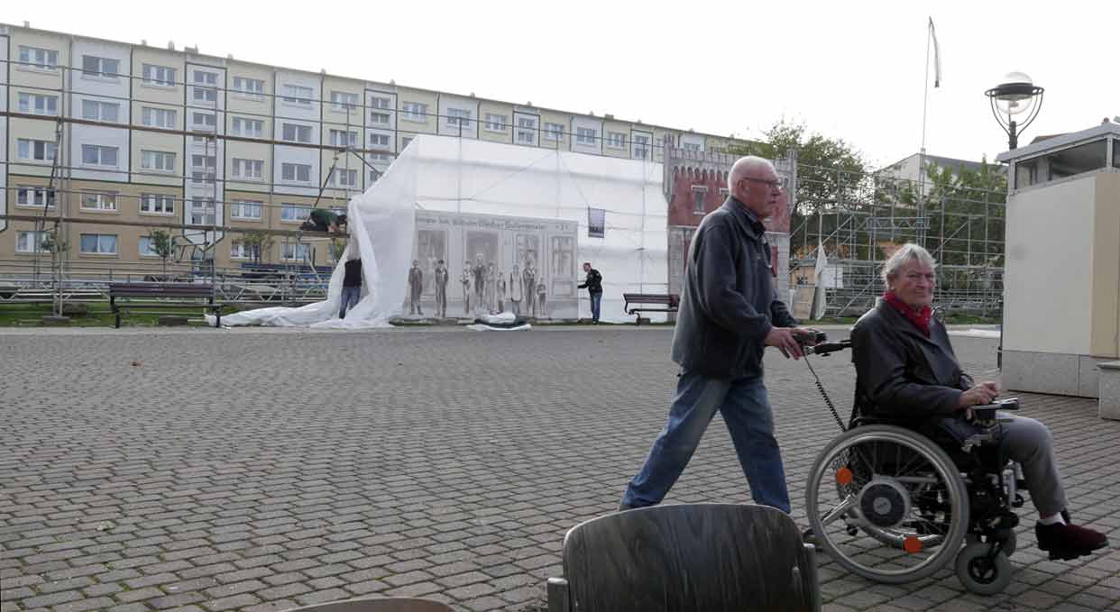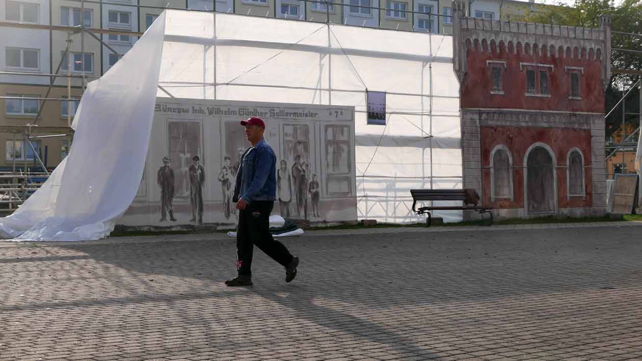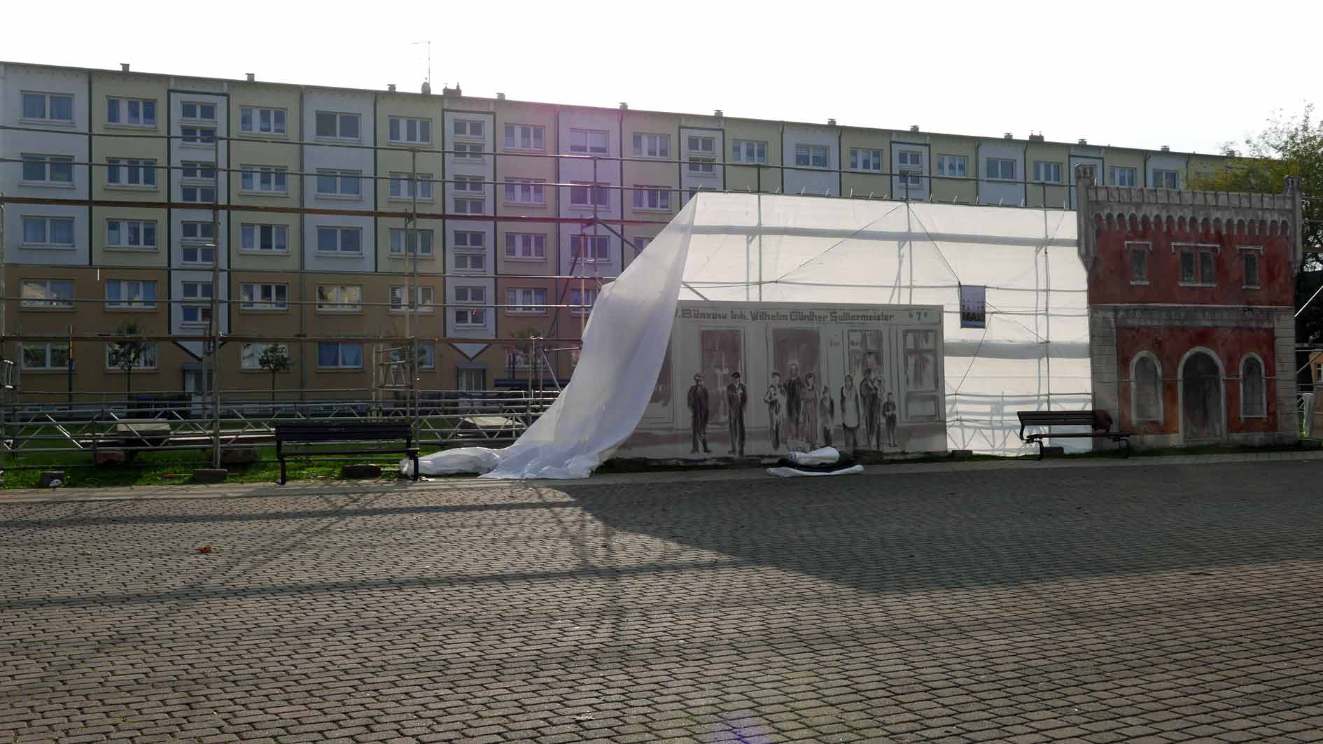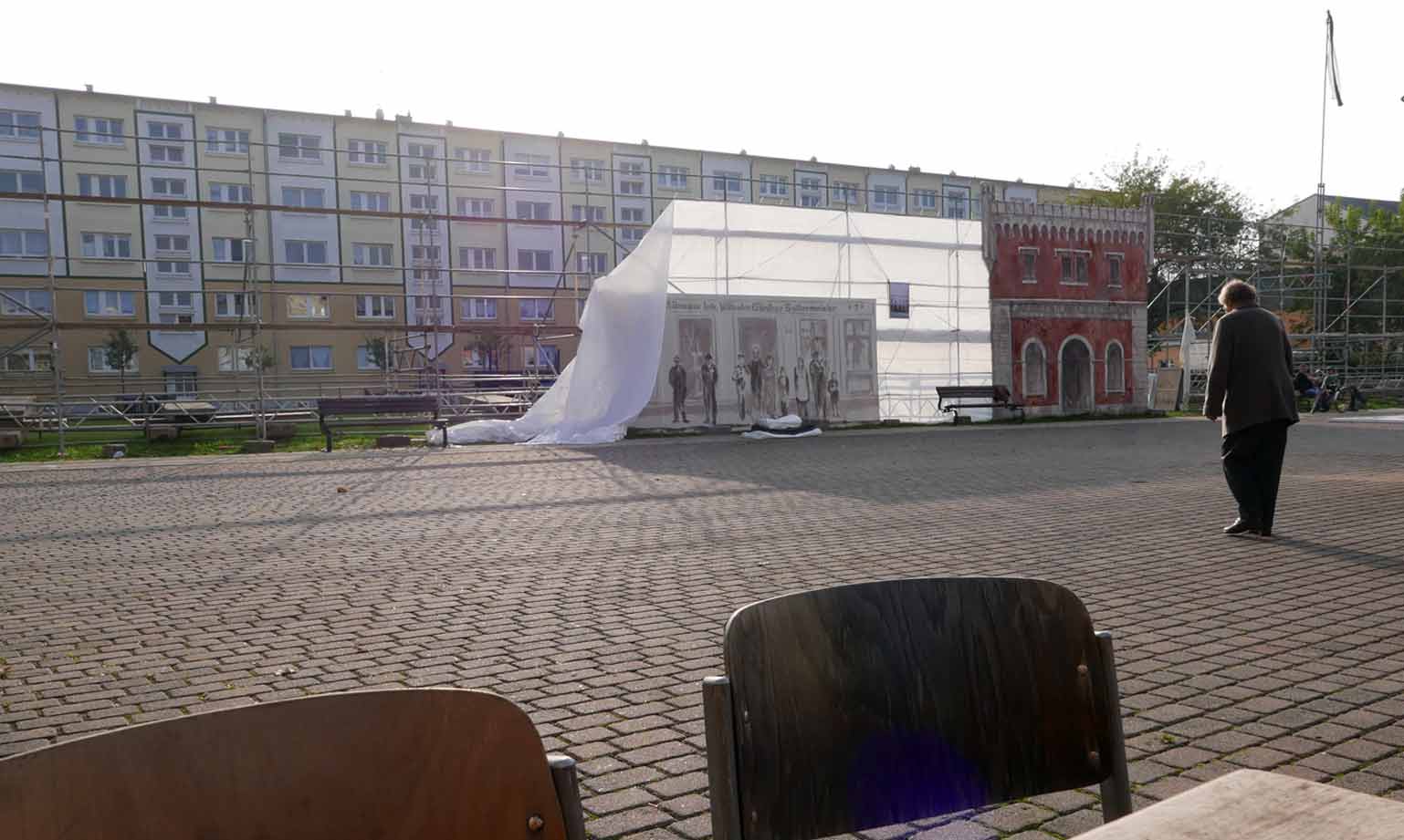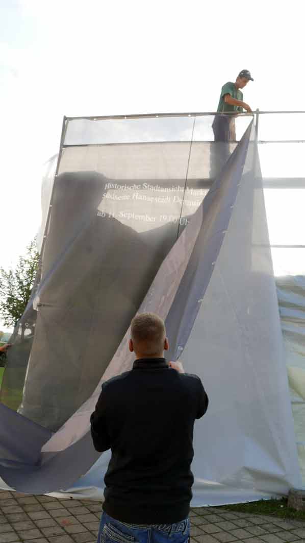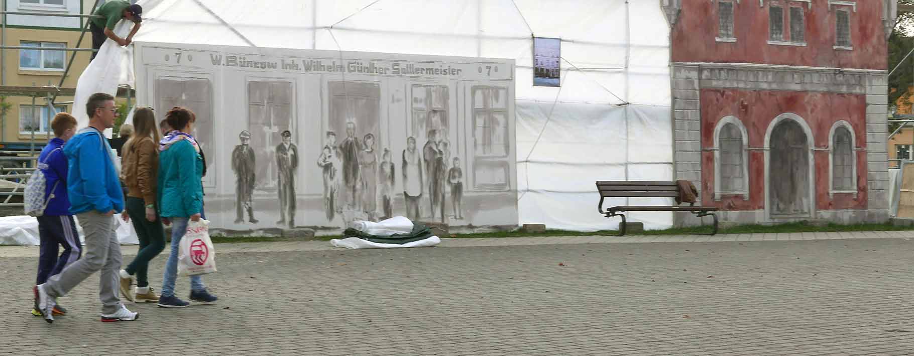 zweimal hat man diese Marktseite verloren. Einmal durch Kriegsende und das Feuer. Dann, nach erstem Leben darin wieder durch Abrisse für eine sozialische Neuordnung der Stadt, ebenso wie das Rathaus für eine Leere, von der sich die Stadt seitdem nicht mehr erholte. Noch einmal jetzt war es die Absicht bewusst zu machen mit den Spuren der Gedächnisse, was da war - und wieder sein könnte. Werden sie die Kraft und den Willen noch haben. Die Stadt wär es wert.