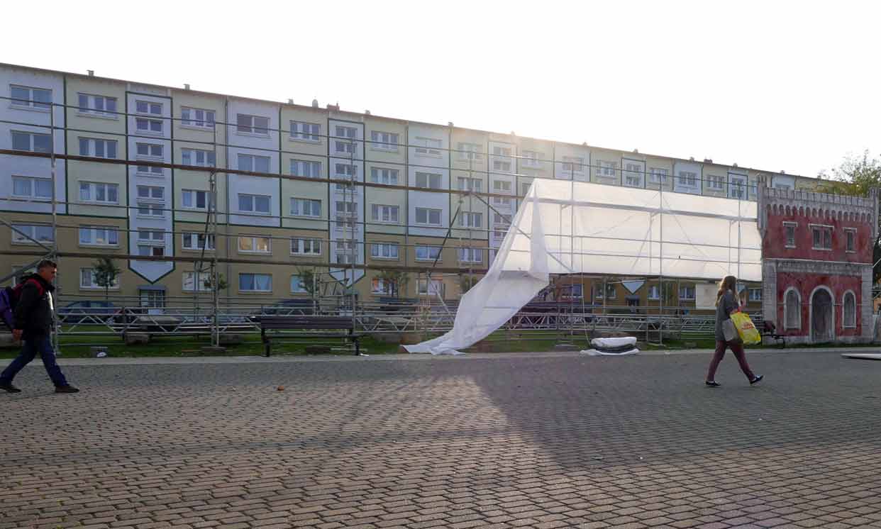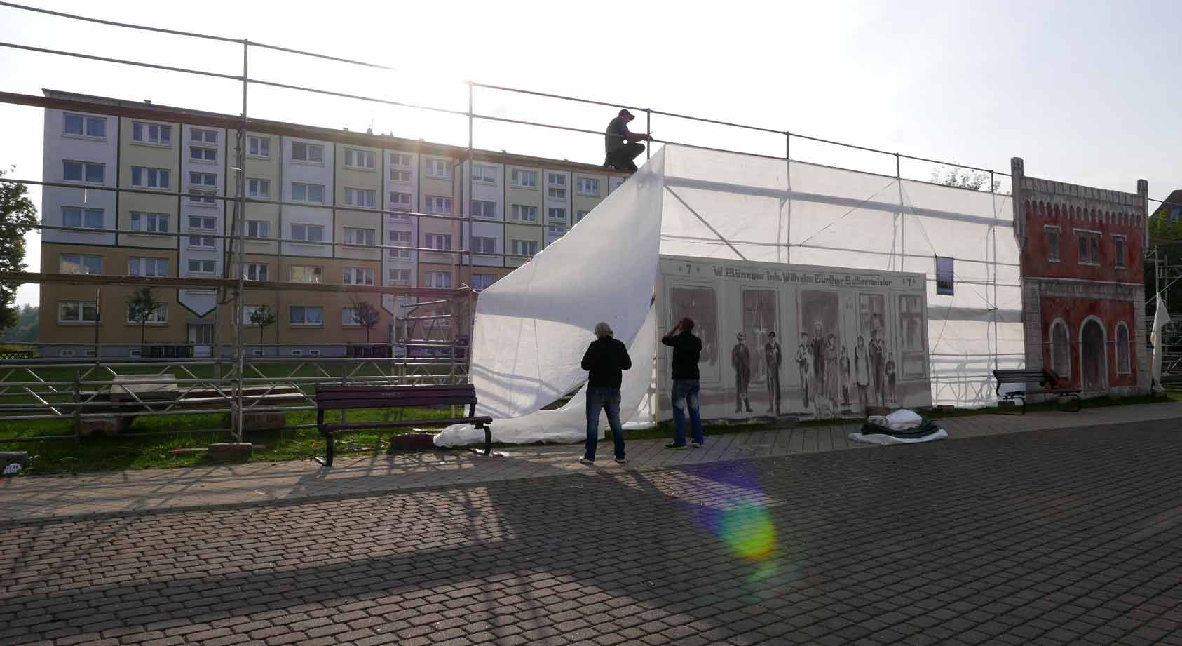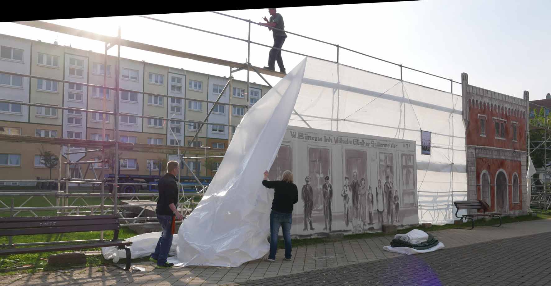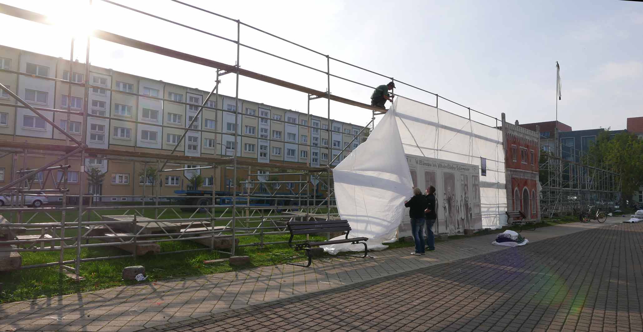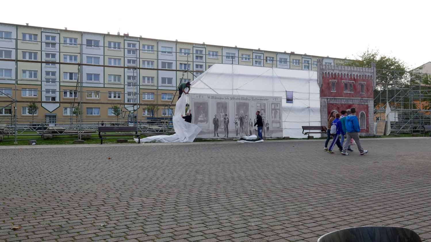 zweimal hat man diese Marktseite verloren. Einmal durch Kriegsende und das Feuer. Dann, nach erstem Leben darin wieder durch Abrisse für eine sozialische Neuordnung der Stadt, ebenso wie das Rathaus für eine Leere, von der sich die Stadt seitdem nicht mehr erholte. Noch einmal jetzt war es die Absicht bewusst zu machen mit den Spuren der Gedächnisse, was da war - und wieder sein könnte. Werden sie die Kraft und den Willen noch haben. Die Stadt wär es wert.