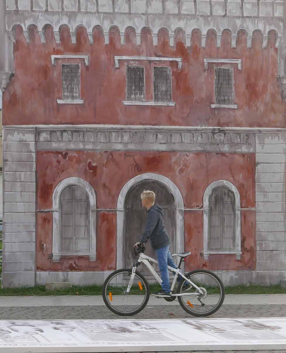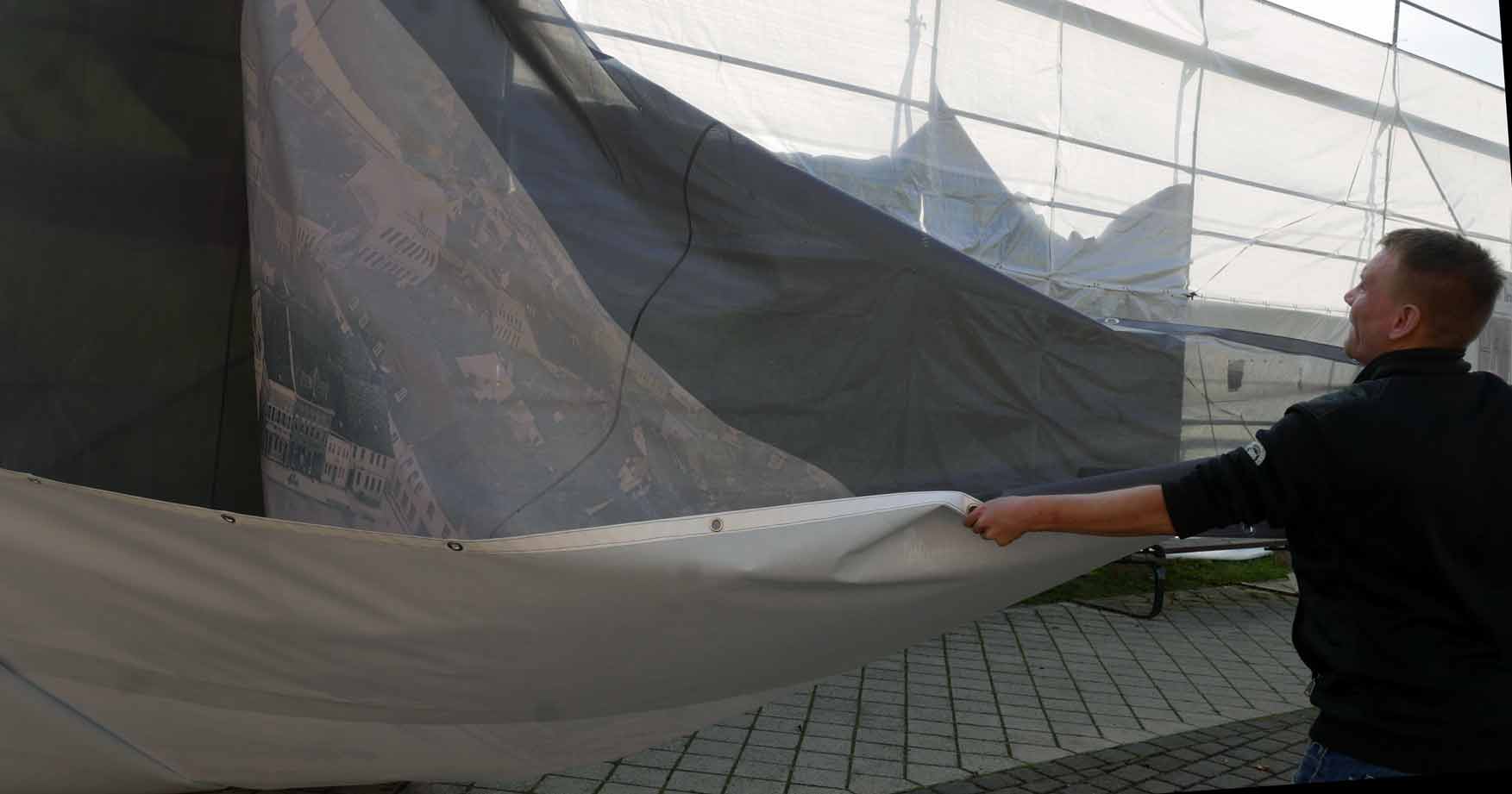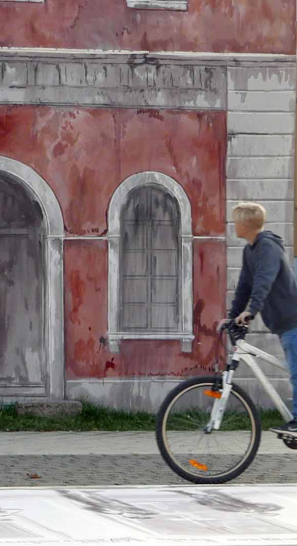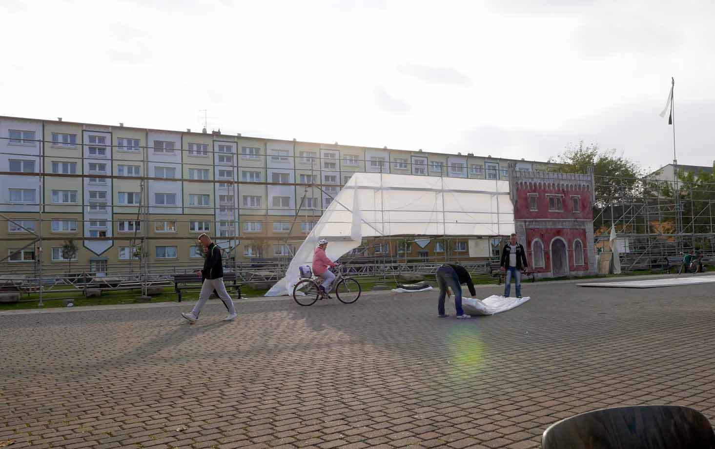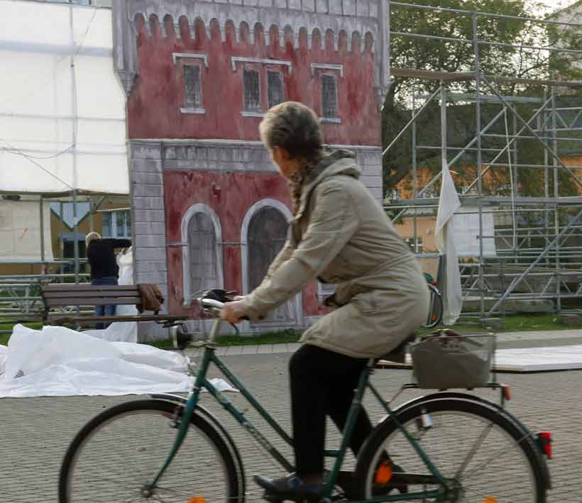 aufnehmen, festhalten wer da geht, über dem Platz, vom einem Platz auf dem Platz, noch vor einer Kulisse, die wir dem Platz geboten.