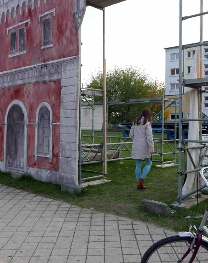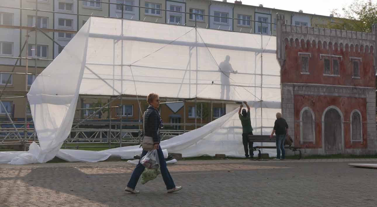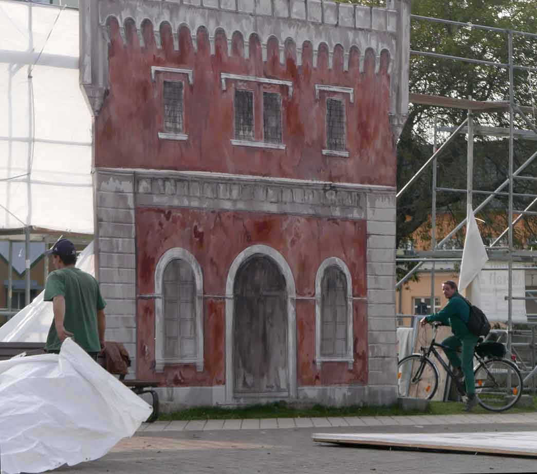 Wir. Wer sind wir. Einer, der malen kann und der des Theaters ist, auch einer, der sonst Häuser baut im Grossen, und einer der Gerüste, sonst als Stütze für Gebäude, und Leute des Geldes, die hier wussten, was nötig ist, für dies Nichts, aus dem wir sind, wenn Filme entsehen in uns als Vorstellung des Willens, im Englischen sagen sie movie als Ziehen seiner Bewegung von Bildern und Tönen auch, aber letzlich sind es die inneren in uns, von Schnitt zu Schnitt dazwischen und über die Ebenen von Realitäten. Mit denen nun das digitale Geflecht uns umgibt. Machen wir was draus.