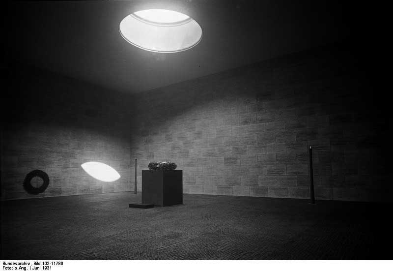 Hier bei Tessenow ist die Trauer den Toten ein ehrender Kranz. Wir dürfen die Toten seit 1818 nicht mehr ehren? Solange werden wir es büssen. Die Form ist immer wieder zu finden.Ohne Form geht es nicht. Im Schloss stopfen sie den Inhalt nun voll mit fremden Ländern und Geschwätz.