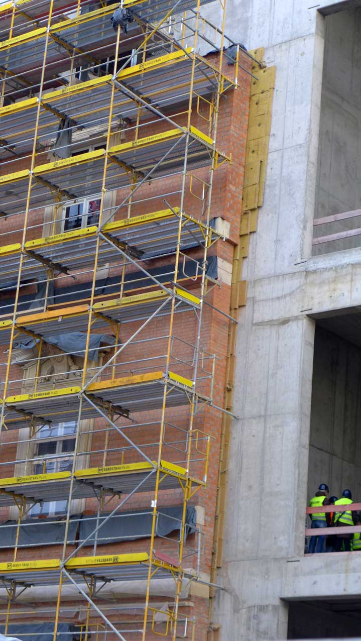 Sie sind dabei auf den Betonkern eine Dämmungsschicht zu applizieren -nach EigenheimBauweise- und darauf Ziegel plus Fassung von Putz und hist.Stuckreliefs.
