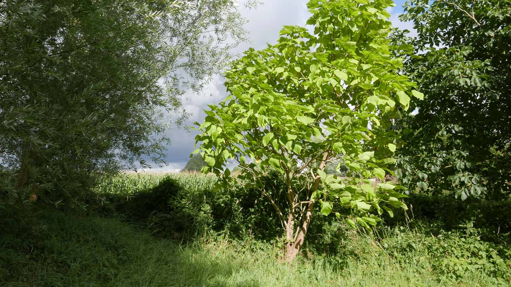 was der Bürgermeister von Nossendorf weghaben will, ohne Auftrag der Gemeinde, zu fällen für ein DDR - Rohr, was einmal ein Graben war aus eiszeitlichen Zeiten. Alles, was wir hier sehen an Bäumen und Wegen, gab es vor uns nicht mehr, in letzten 10 Jahren entworfen.