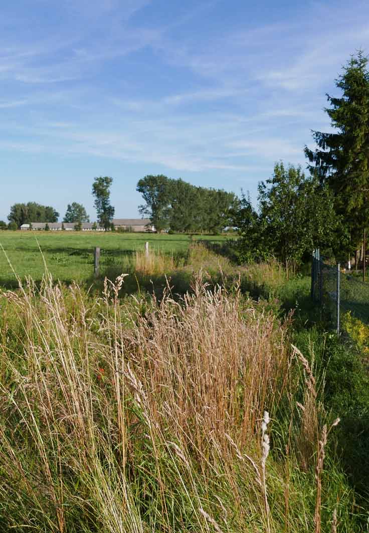 die Re-Kultivierung des betonierten "Kaphofes" aus der Maschinen- Wüste der LPG in Koppeln wieder und eine Graben-Landschaft ohne Graben, verrohrt nun und voll mit dem erstickenden Müll des Dorfes.