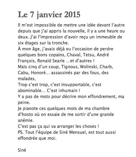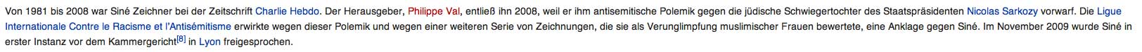 Von 1981 bis 2008 war SinŽ Zeichner bei der Zeitschrift Charlie Hebdo. Der Herausgeber, Philippe Val, entlie§ ihn 2008, weil er ihm antisemitische Polemik gegen die jŸdische Schwiegertochter des StaatsprŠsidenten Nicolas Sarkozy vorwarf