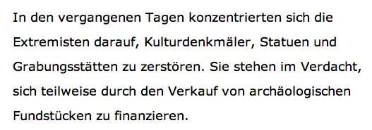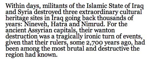 Die Zerstörer der assyrischen Kulturstätten des Welt-Kulturerbes erscheinen wie Büttel im Auftrag ganz anderer Interessen vom Anfang des Krieges gegen Bagdad.