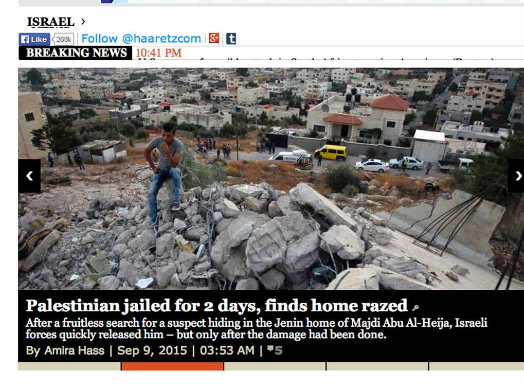 Zwei Tage, nachdem sie von israelischen Soldaten festgenommen, ein palästinensischer Bewohner von Jenin, Majdi Abu Al-Heija wurde letzten Donnerstag veröffentlicht von Megiddo Gefängnis und ging zurück zu seiner Heimatstadt West Bank. Allerdings war er nicht in der Lage, nach Hause zurückzukehren, weil sein Haus wurde von israelischen Sicherheitskräften in der gleichen Nacht wurde er verhaftet, während das, was sie behaupteten, war die Suche nach einem Verdächtigen versteckt es abgerissen.