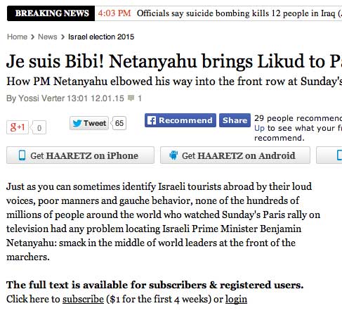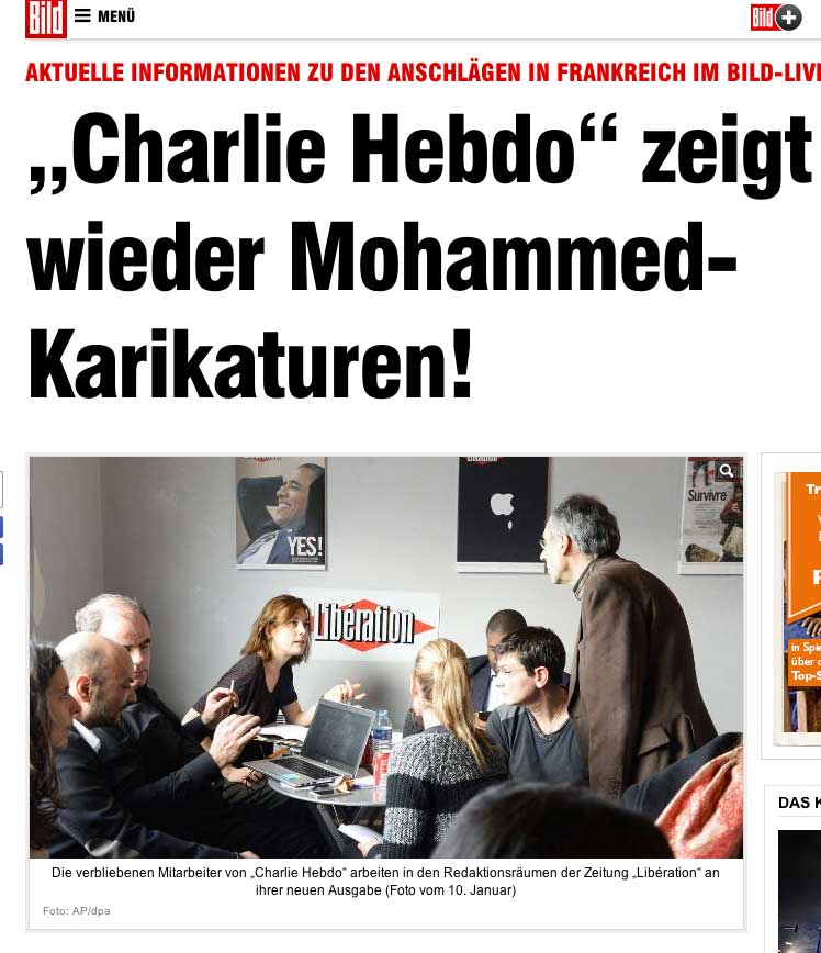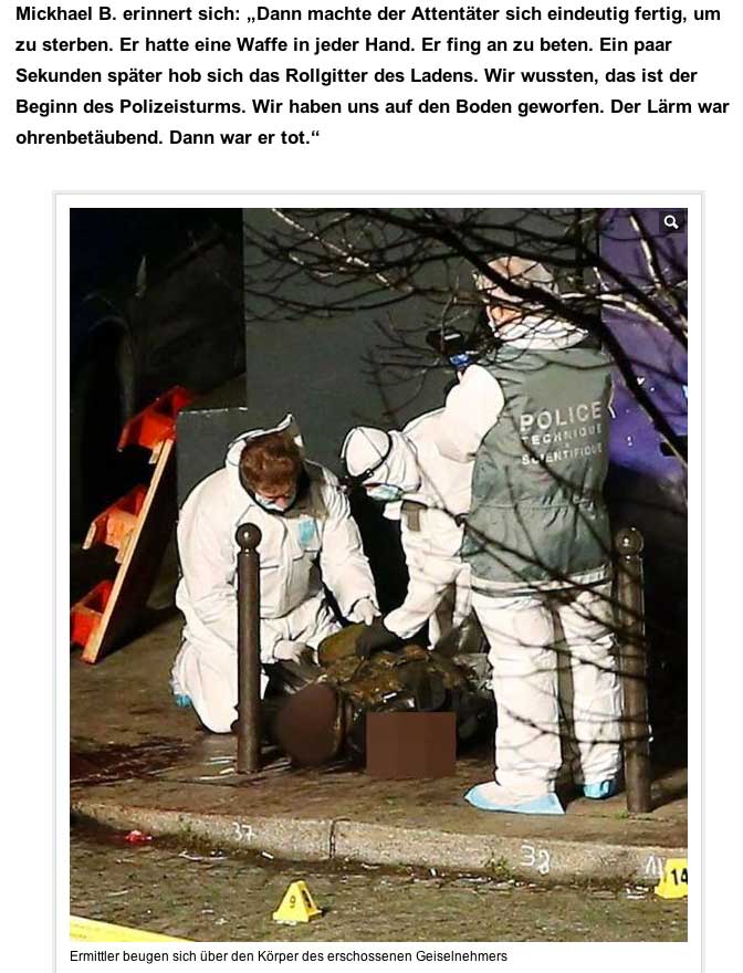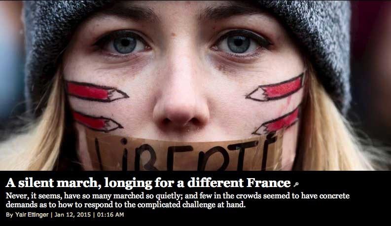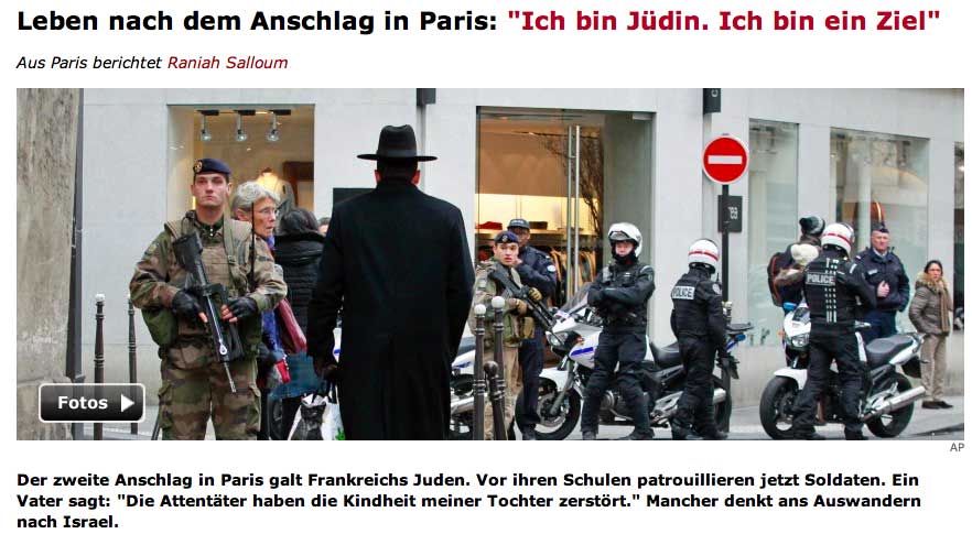 3, 5 Mill. Menschen auf den Strassen, über 40 Staatsführer in ersten Reihen,wer zählt die Millionen der Welt an den Geräten - und dann diese Bilder. Ein Land auf der Flucht, unter Polizeischutz. Der Sieg sieht anders aus. Eher nach Politikern, die nach Öffentlichkeit drängen, es nötig haben, Tote, die andere nach sich ziehen, Freiheit, die missbraucht wurde, geschändet, Hybris der Welt, immer weiter. So leben. Die Juden in Frankreich gettorisiert, wie in Jerusalem, wollen nach Israel, dorthin, in ein Leben von Mauern umgeben, unter Waffen, Eingeschlossene durch sich selbst sein?