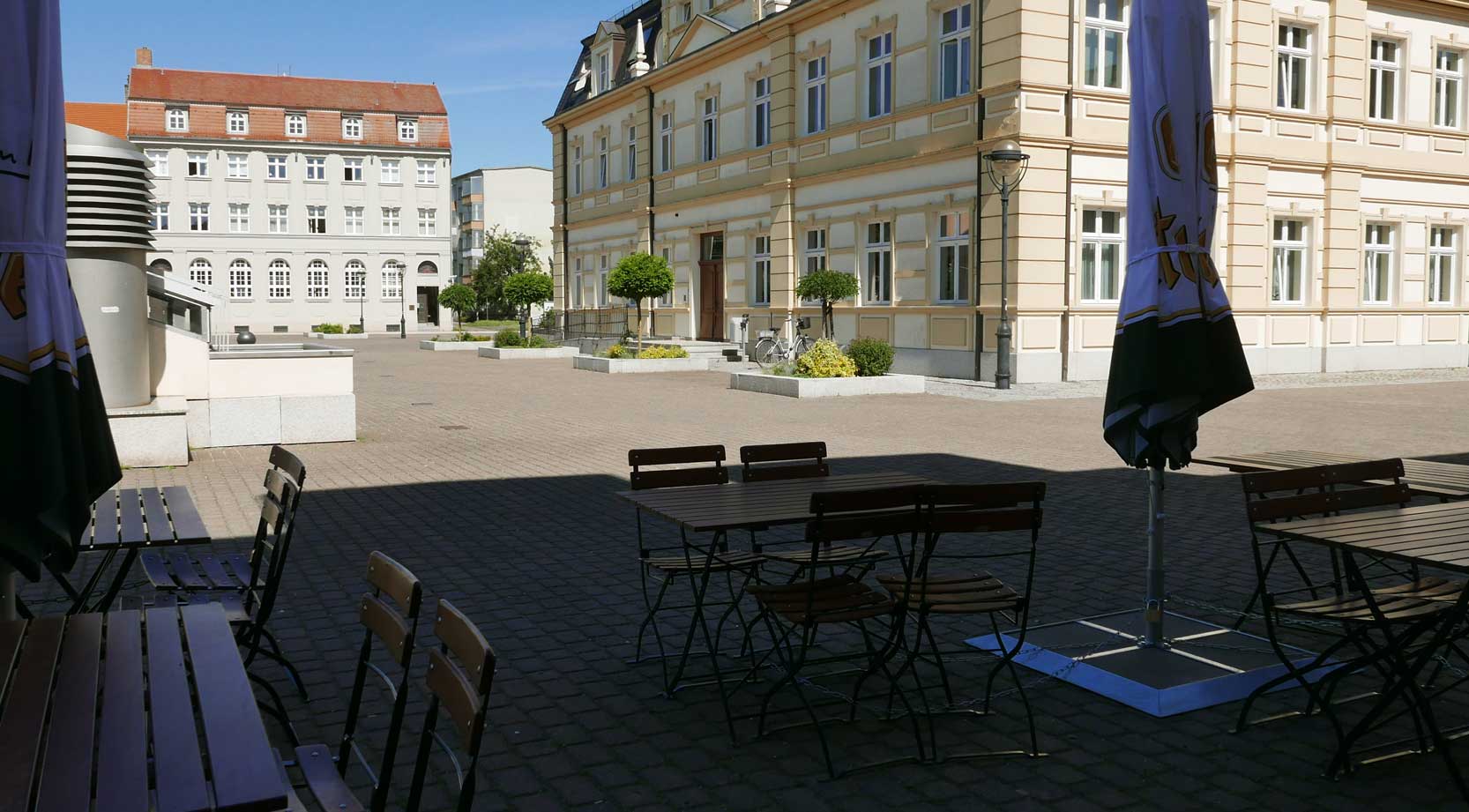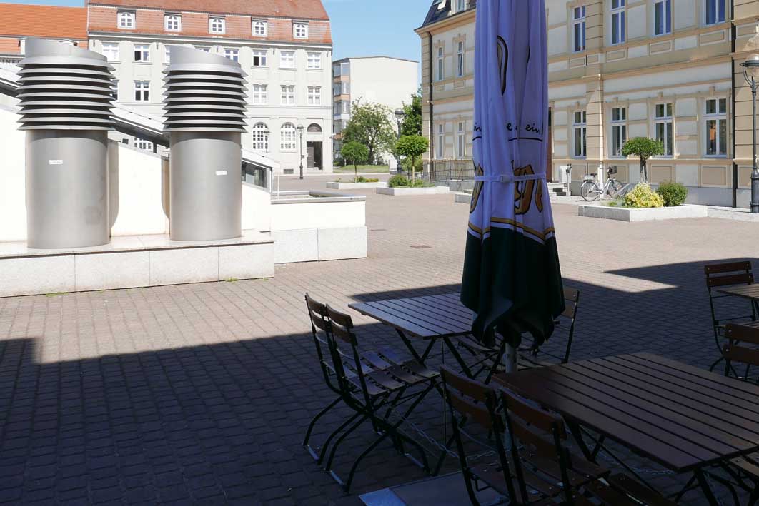 aber vor der griechischen Teverne gibt es wieder Tische und Stühle auf dem Markt