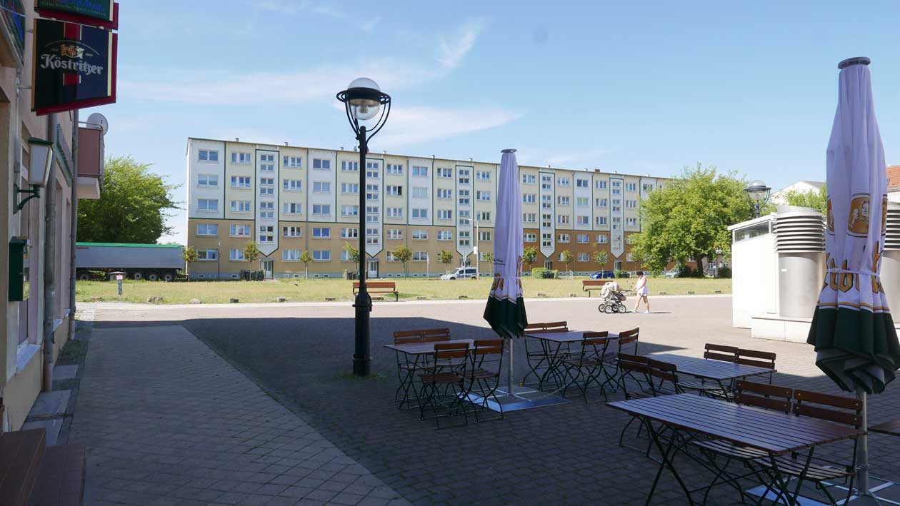 das Problem der erdrückenden Plattenbauen an der Stelle der Südseite des Platzes kennen wir