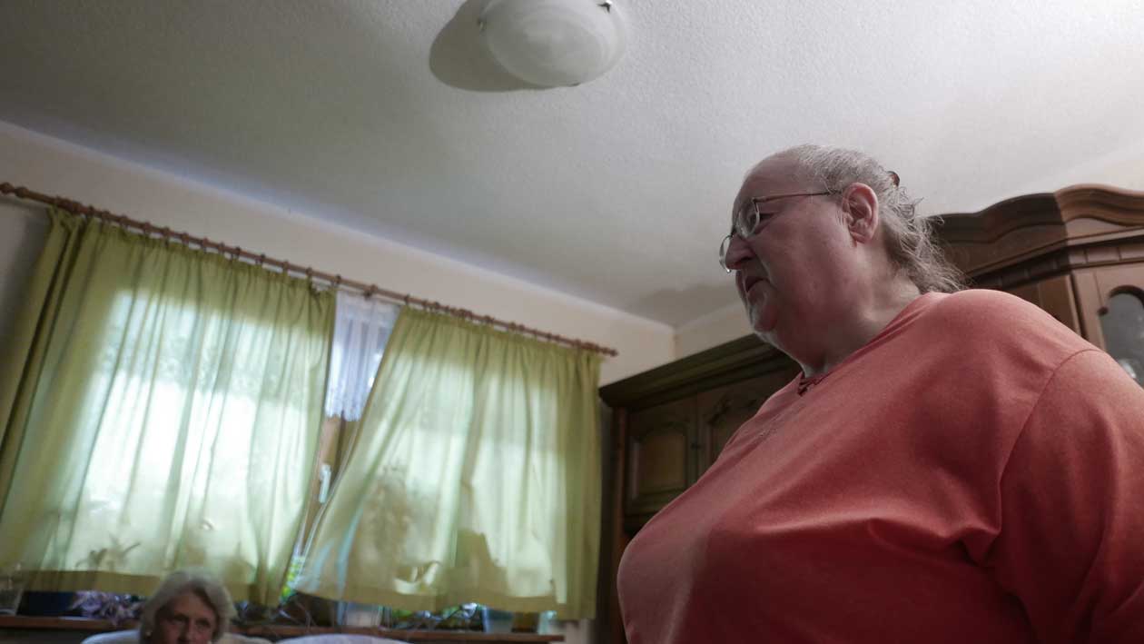 das tägliche Messen des Wasserstandes der Peene wohinein die Trebel fliesst erklärend immer höher das Wasser in den Jahren