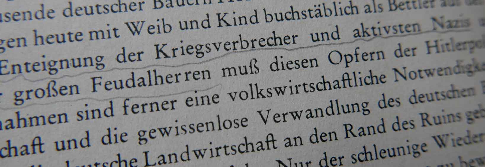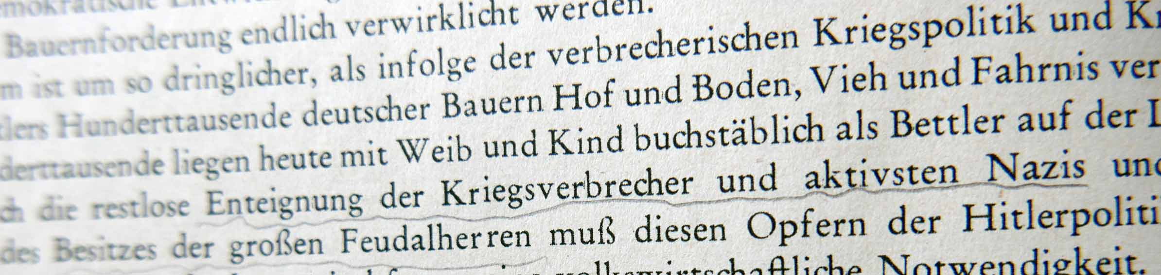 alles aufteilen in kleine Teile, den Boden, die als Kriegsverbrecher stigmatisierten Enterben der Geschichte. Und die Russen sollen die "Schmutzarbeit" machen.