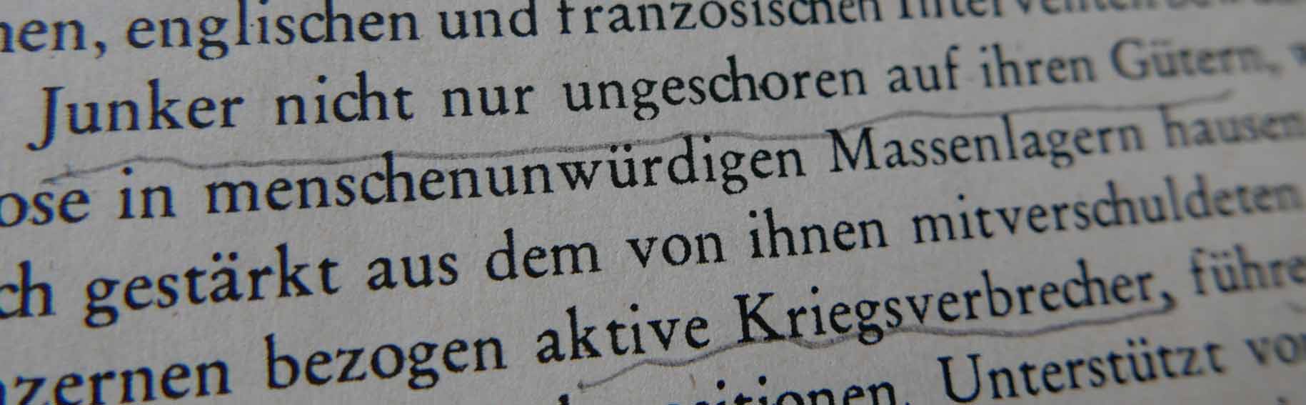 Und wer nicht mitmachte, den Spiegel vorhielt, in ihrem Theater, den stiessen sie aus. Wie vorher die Rassengesetze, so hatten sie nun die der Klassen. Und der Hass war schnell gelernt.Wie ein Bissen Brot in der Not.