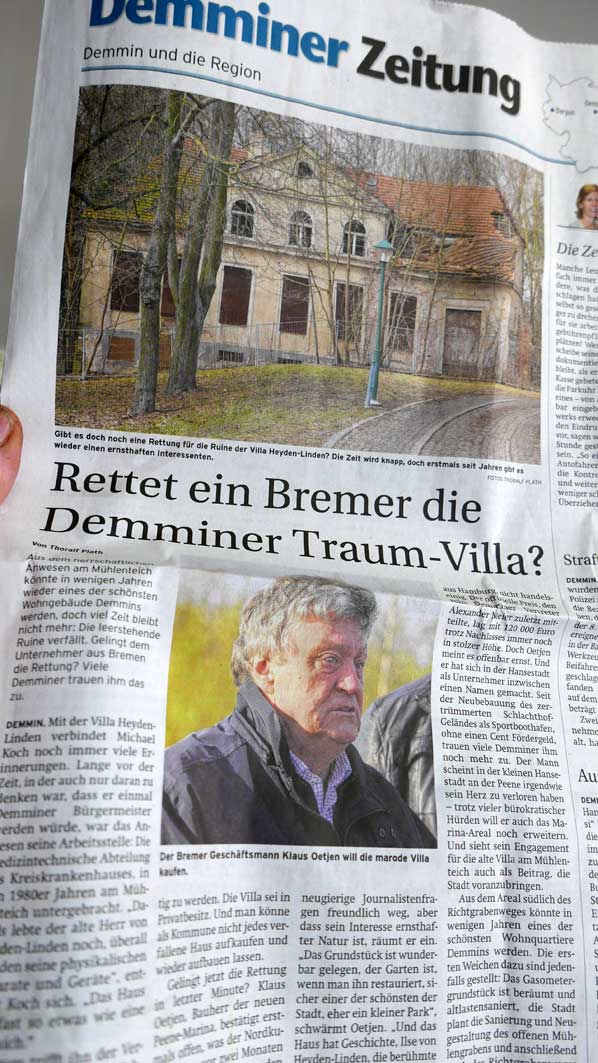 Und dann ist noch ein Käufer da. Auch für Medrow Das Schloss. Aber nur wenn der Park dabei ist. Wie sonst dort leben.