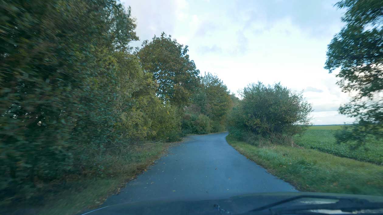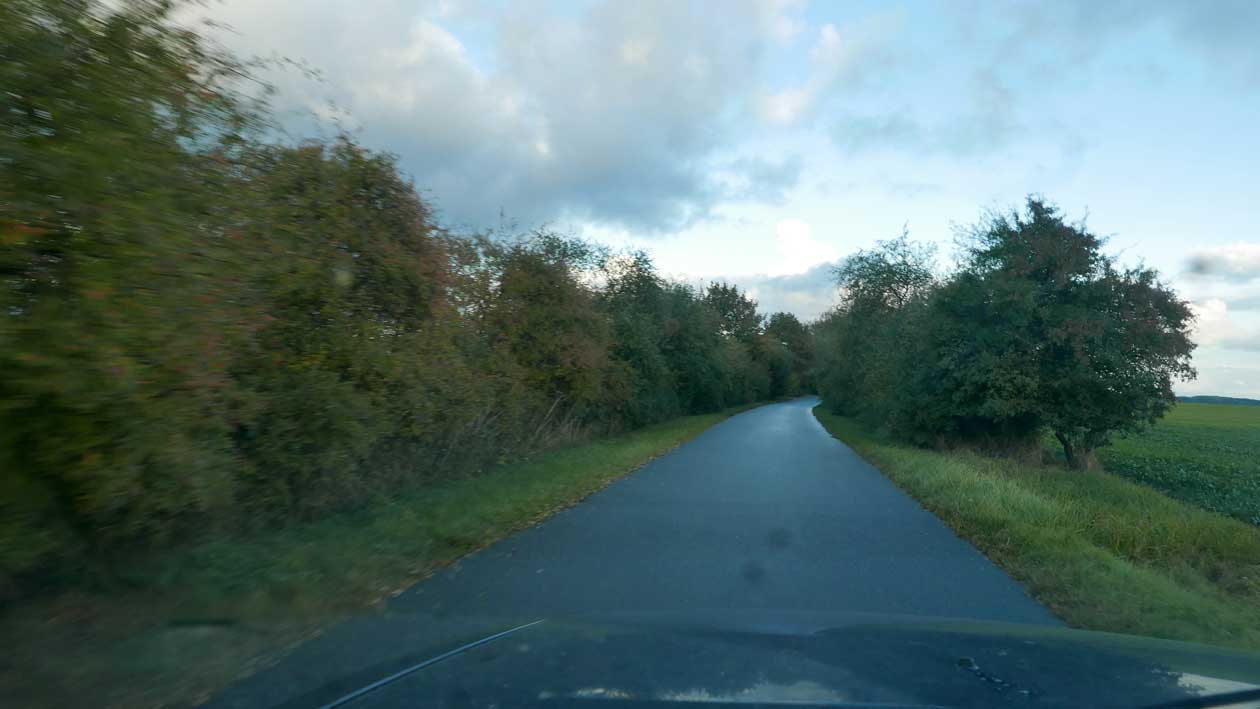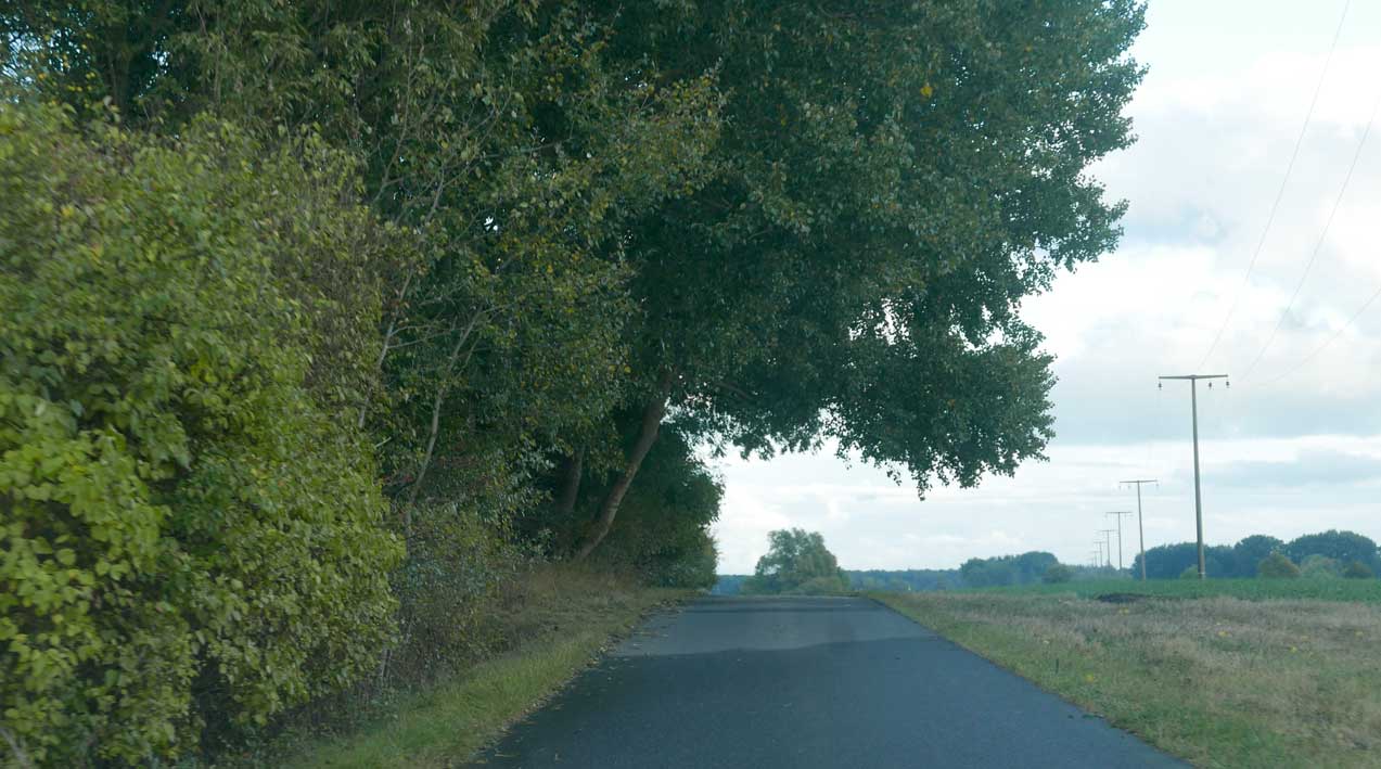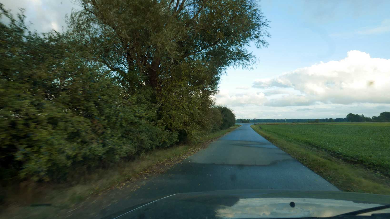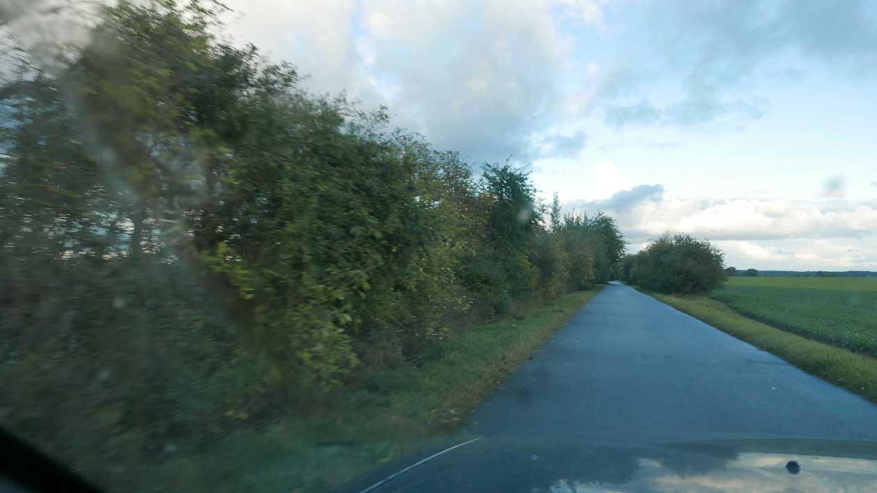 derselbe Weg nun durch die Felder links und rechts, in anderer privater Hand (N.H.)jetzt mit öffentlichen Mitteln ausgebaut, erhält öffentliche Mittel zum Beschneiden. Und das wie eine geh. Staaatsaktion.