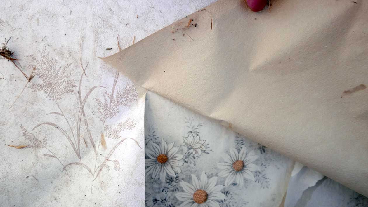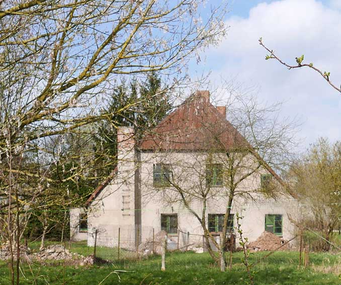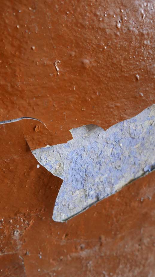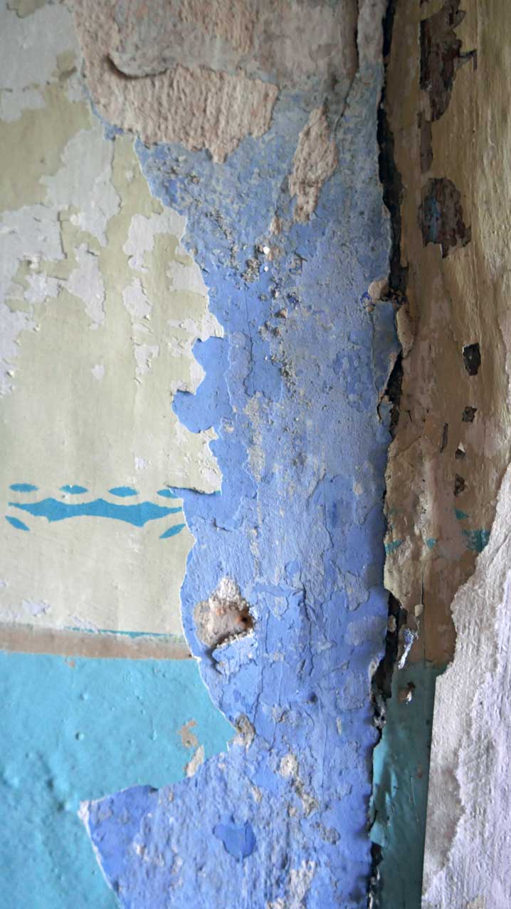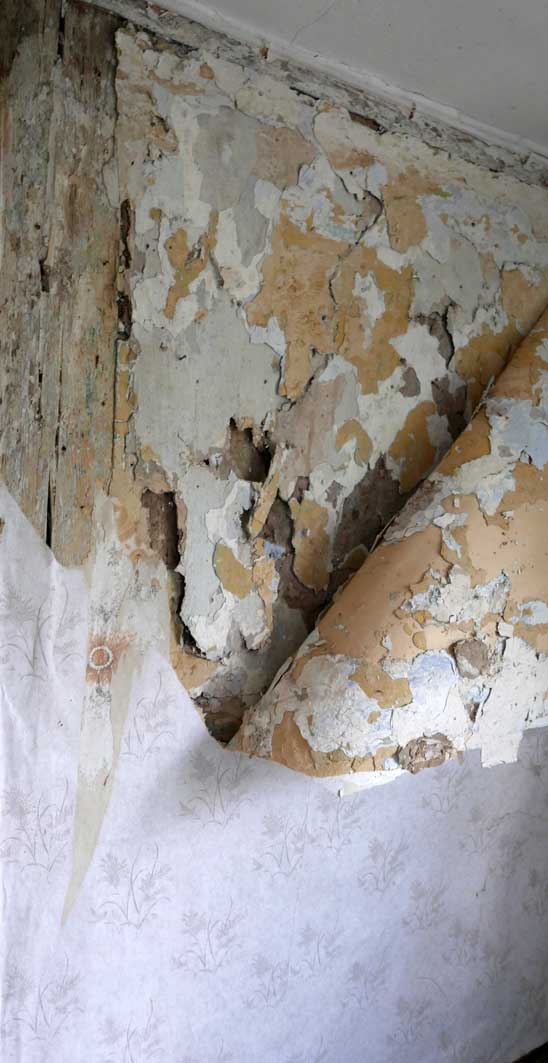 so wohnte sie seit Jahrzenhten hier . Der alte Kaminabzug mit der Feuerstelle darunter, heute zu, aber dort dann auch bei ihr der Herd. Einzig noch erhalten im Dorf. Alte Stromleiutungen und die Schichten auf den Wänden der Farbfassungen und Tapeten. Zwischen dem Fachwerk der Lehm, hier nichts durch "moderne Materialien" ersetzt.
