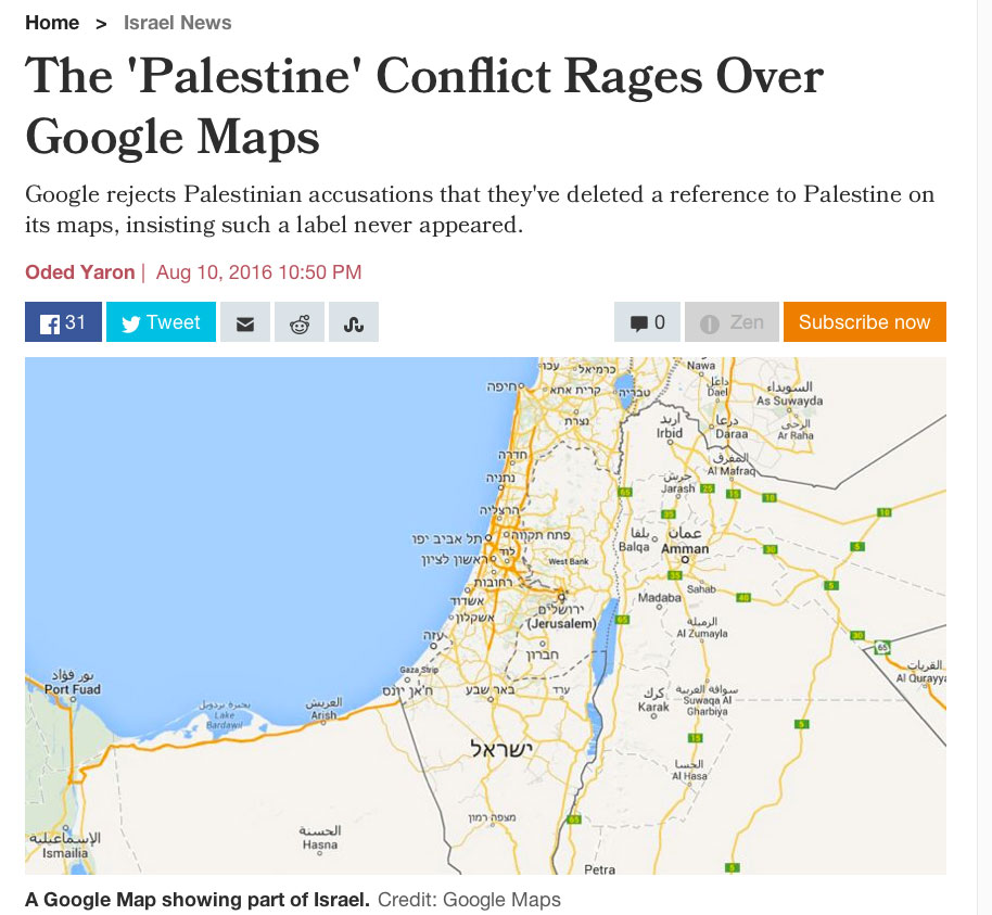 Google weist die pal. Vorwürfe zurück dass sie Palästina von ihrer Karte entfernt hätten. Sie bestehen darauf, dass Palästina nie existierte.