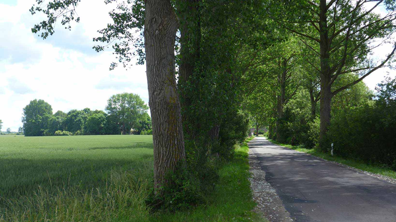 "die Pappeln im in der Ortslage Nossendorf an des Westseite der L 27 wurden in den 1970er Jahren als Wind- und Sichtschutzpflanzung durch die damalige LPG (T) Nossendorf angepflanzt"