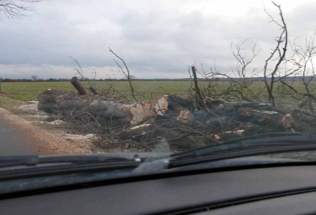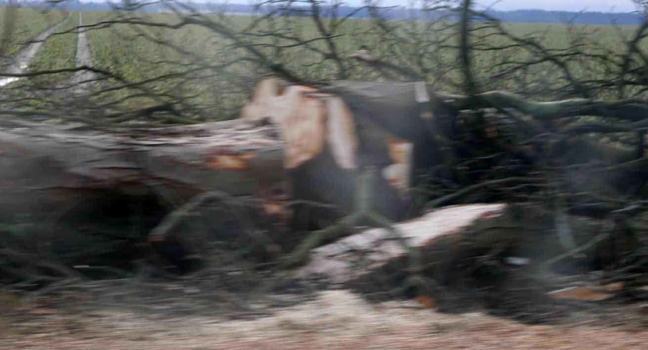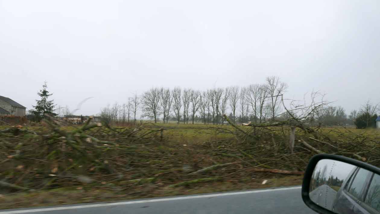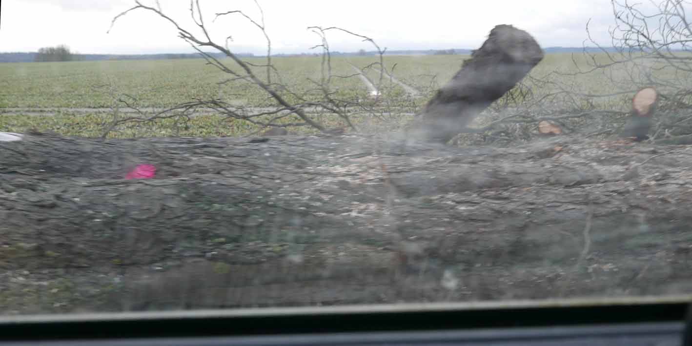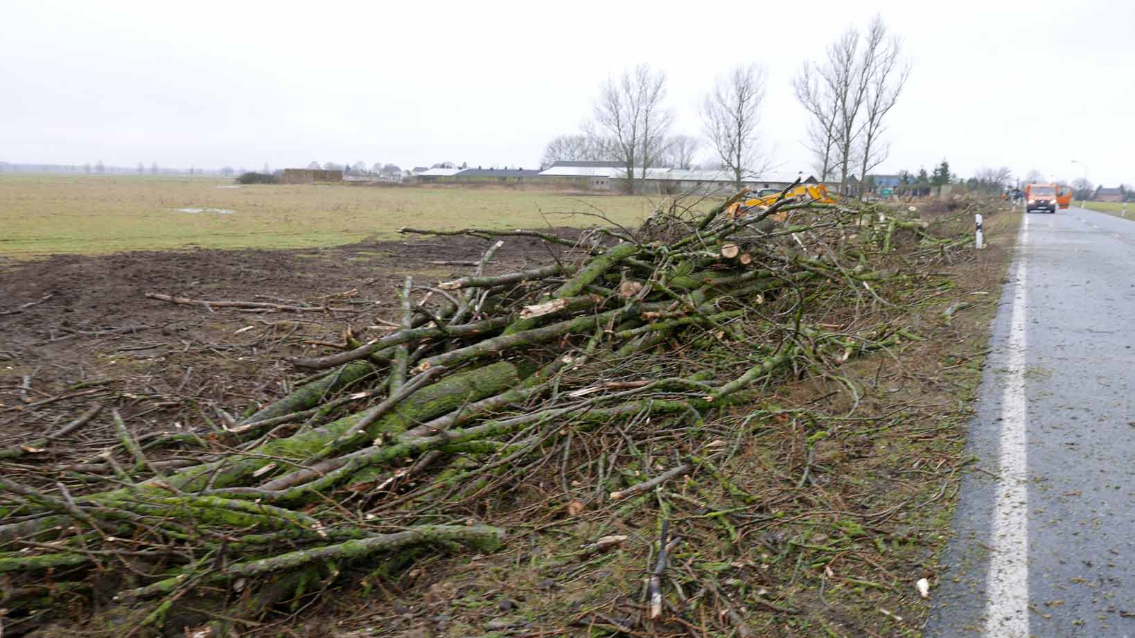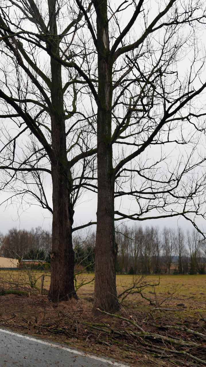 Seit Jahen fahren wir täglich auf der Strasse selbst bei Wind und Wetter, nie lag etas auf der Strasse. Die Bäume haben -hatten- keine Anzeichen von Makel eines Alters, das ihnen Anlas gab für die Sicherheit der Autos zu handeln.