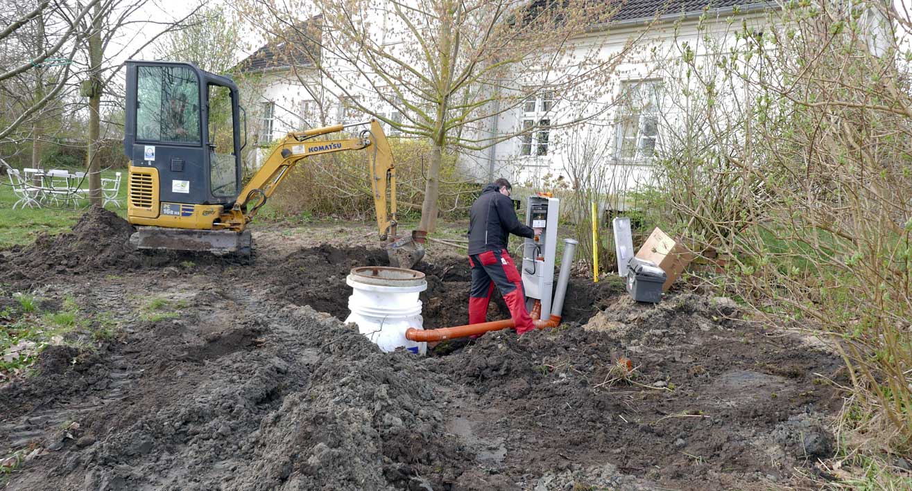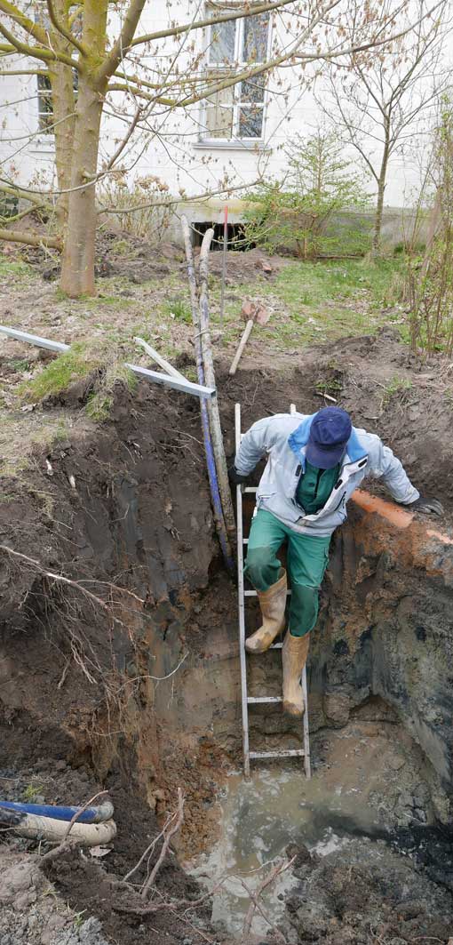 Die schon hier am lokalen Haus besorgte Klärung in einen dünnen Fluss der dünnen Rohre sorgt mit einigem Auwand vor für neue Trennung dann im Klär-Werk am fernen Ortsrand.