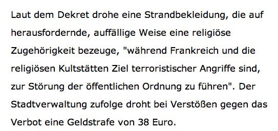 In Cannes dŸrfen Frauen am Strand keinen Burkini tragen - das hat der BŸrgermeister angeordnet. In einer Zeit mit vielen Terrorangriffen kšnne die muslimische Kleidung die šffentliche Ordnung stšren.